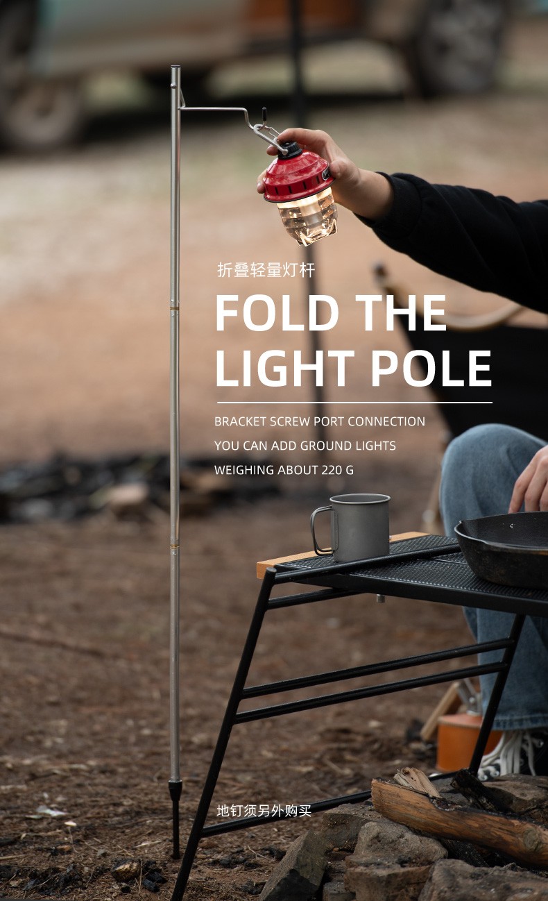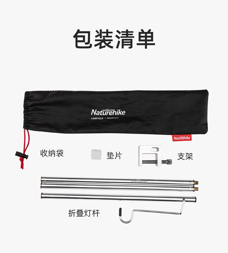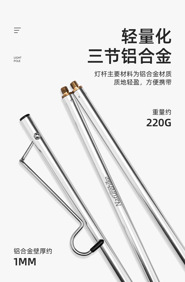 NatureHike挪客 超轻折叠露营灯杆 户外便携铝合金野营照明灯支架 银沙灰