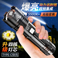 公牛适用强光手电筒可充电小型便携户外超亮远射应急耐家用LED灯 9900w普亮_伸缩变焦_智能电显_USB直充