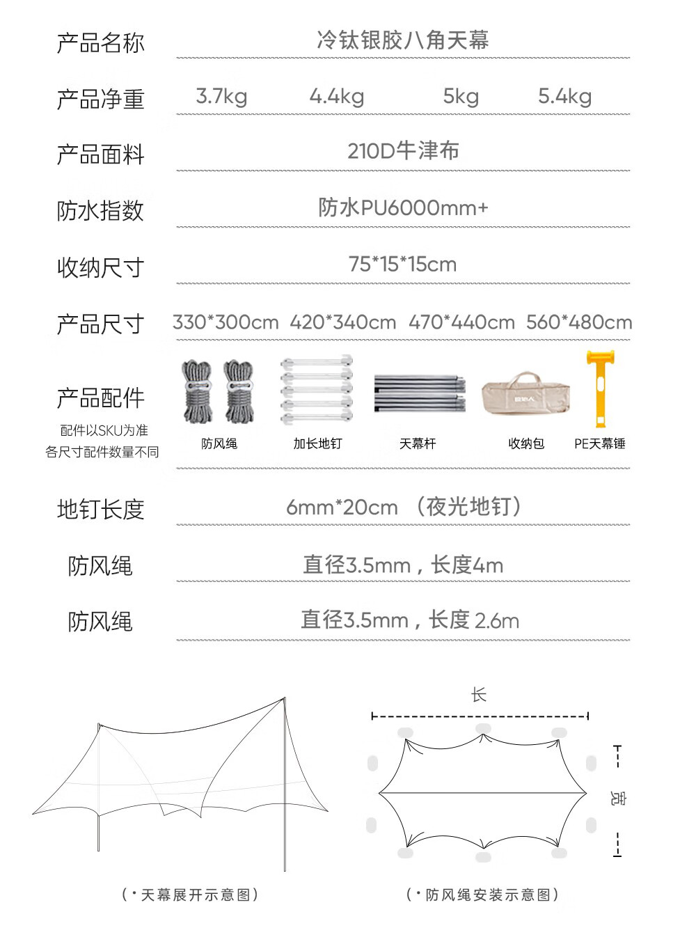 山之客遮天酷拓户外庇护所营地大型防雨防晒牛津布多功 450*300流沙金遮天 5-8人