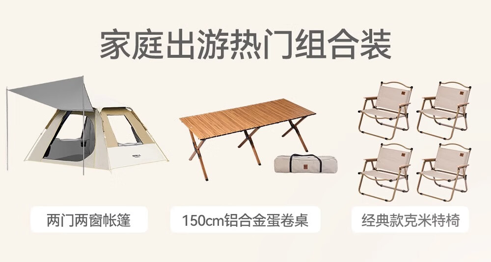 原始人天幕户外露营桌椅六件套野营大号防晒免搭银胶遮阳棚 16㎡双人月亮椅套装