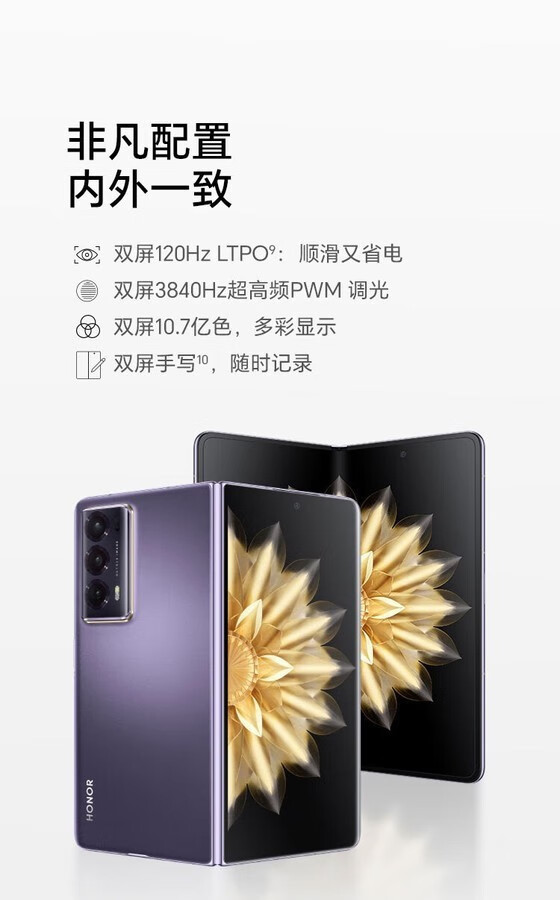 荣耀(HONOR)展机Magic Vs2轻薄机身 调光护眼双屏长续航5G折叠屏手机 门店 绒黑色 16GB+256GB