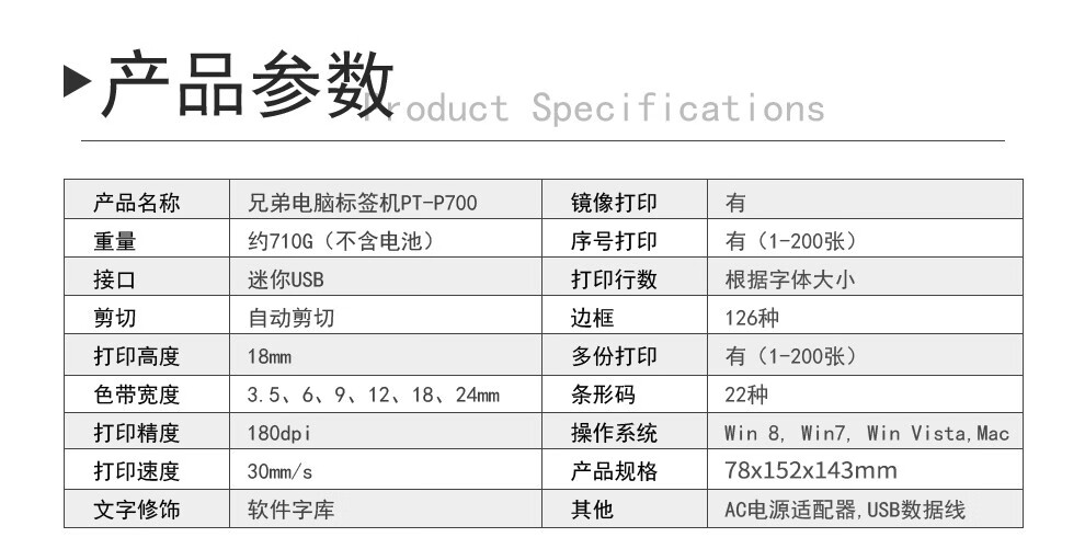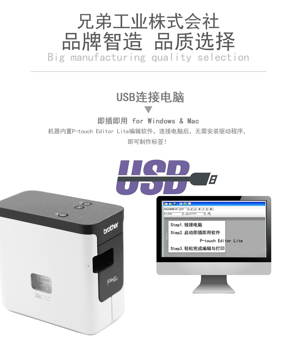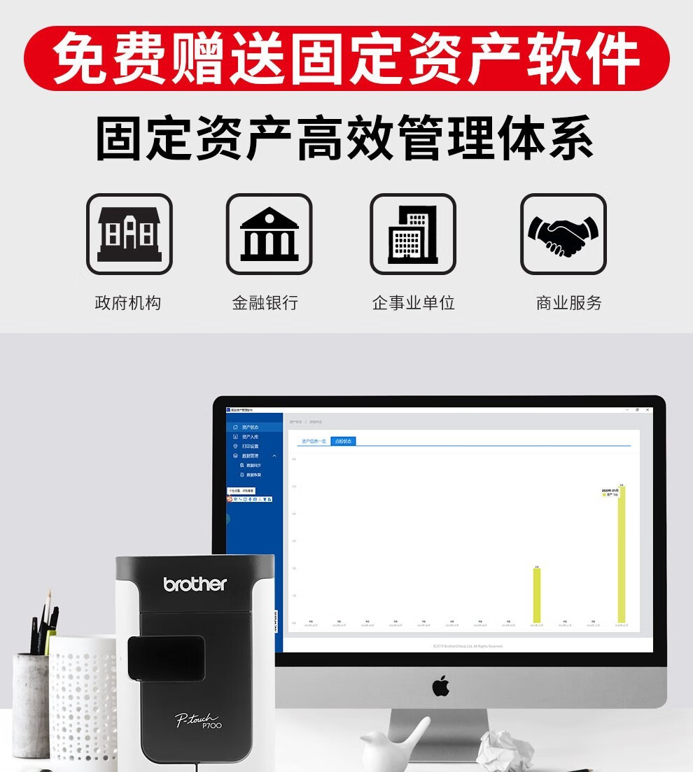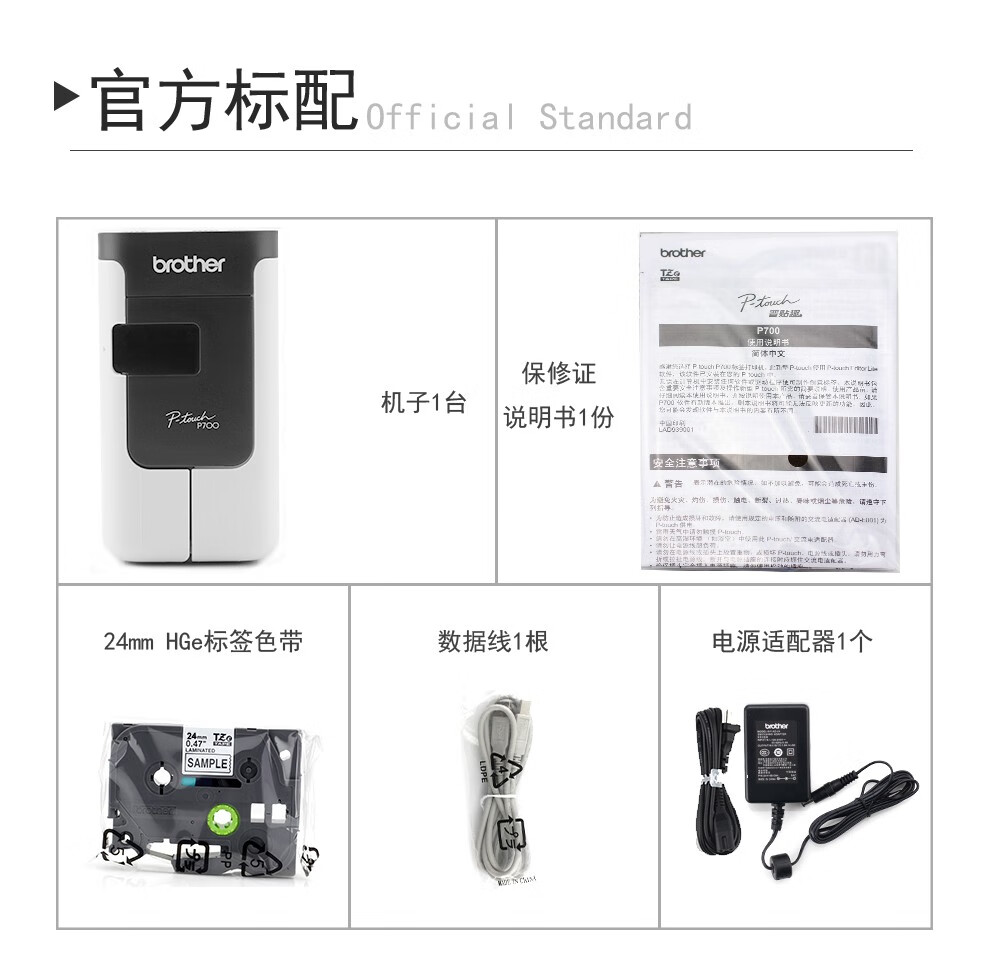 兄弟标签机PT-P700连电脑桌面固定资产标签打印机通信线缆打签机 官方标配+5卷色带