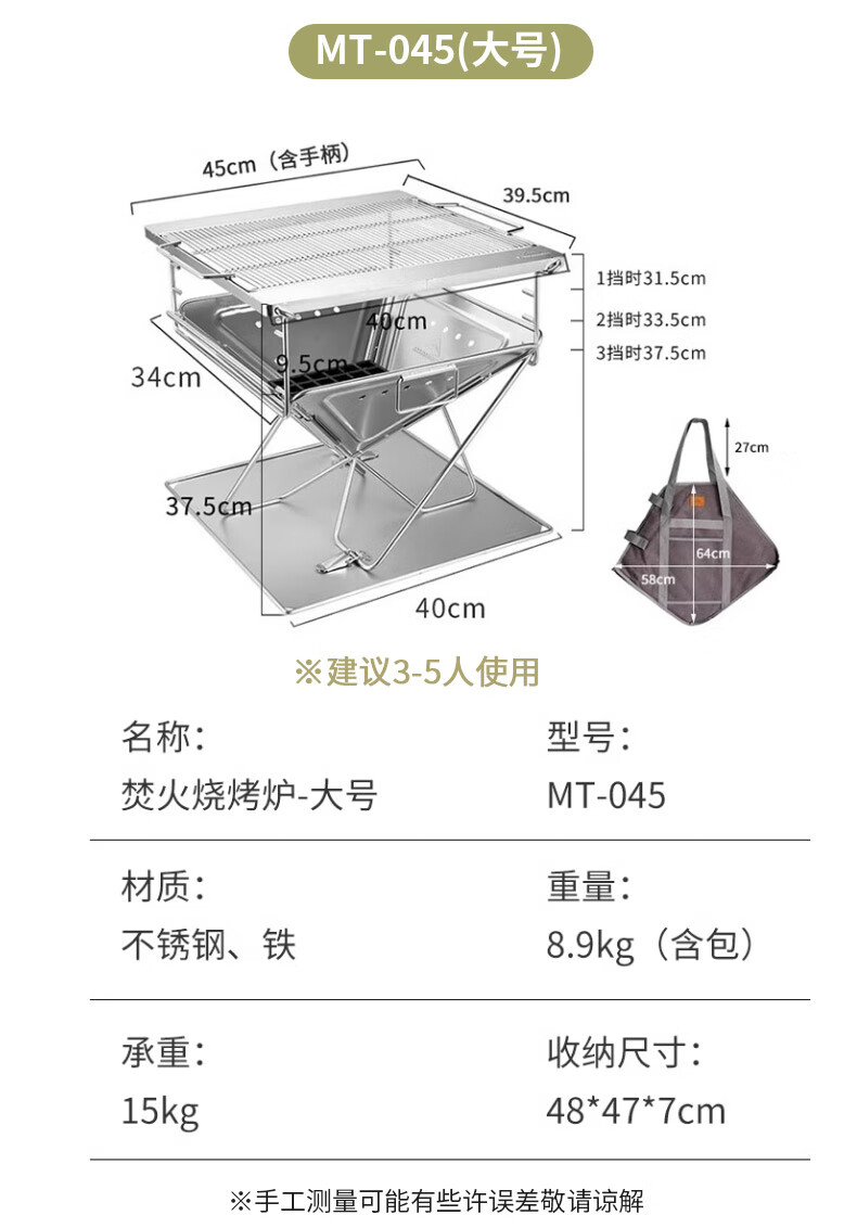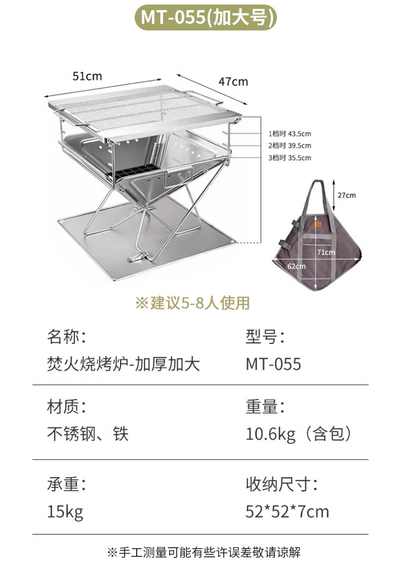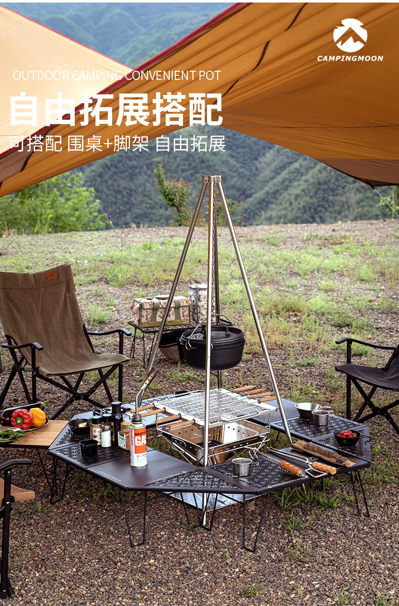 柯曼焚火台烧烤炉不锈钢焚火炉架烧烤户外露营篝火盆科曼MT035 【MC-255】大号铝吊锅