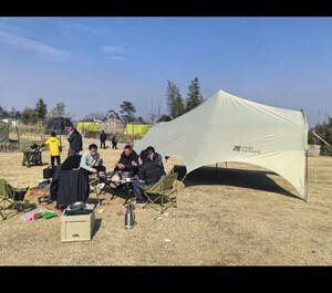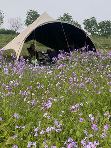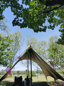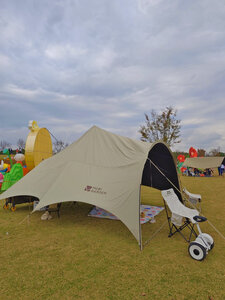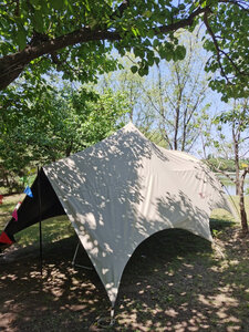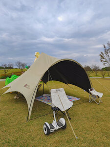 很赞的天幕,一出场就是最靓的仔,内部宽敞,布料足,颜值高,爱好露营的值得入手,一直有路过的询问品牌和价格。比帐篷通风痛快,又比方形天幕遮阳效果好!