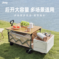 JEEP户外露营车 折叠收纳营地车小推车拖车 野餐摆摊出行装备 【后开扩容】砂岩驼+桌板 180L