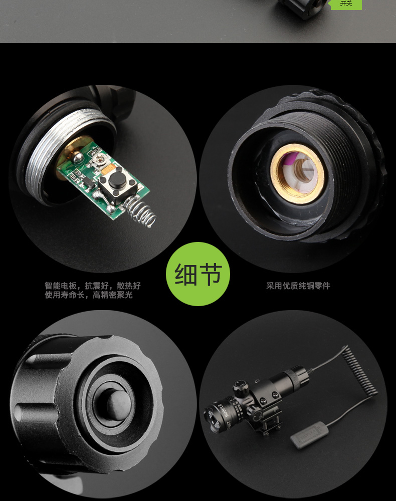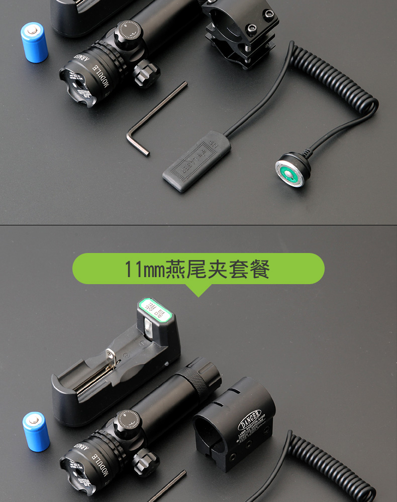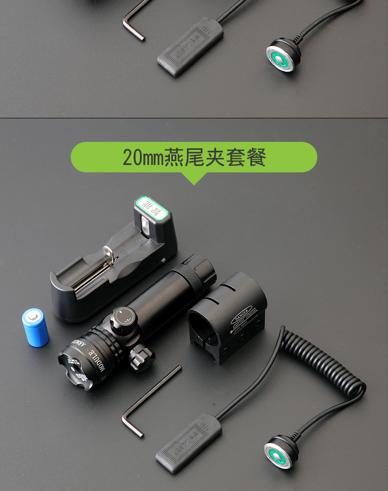 探露红外线激光瞄准器95手电筒可充电绿激光可调抗震自锁手调适配191 绿光4电1充+1鼠尾开关