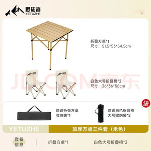 野徒者露营装备全套户外桌椅折叠桌椅套装便携式蛋卷桌野餐烧烤露营桌椅 三件套【一桌二椅】米色 便携桌椅套装