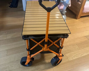 疆屿露营车野营户外折叠手推车野餐摆摊拖斗车儿童可躺超大聚拢营地车 珊瑚橙聚拢标准拖斗+碳钢桌面