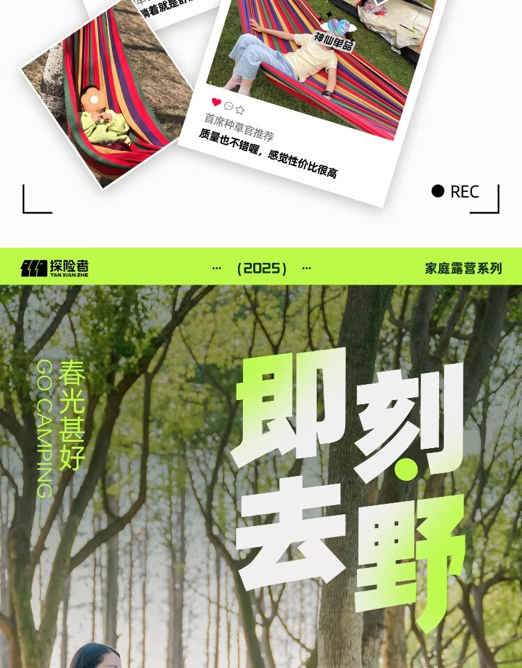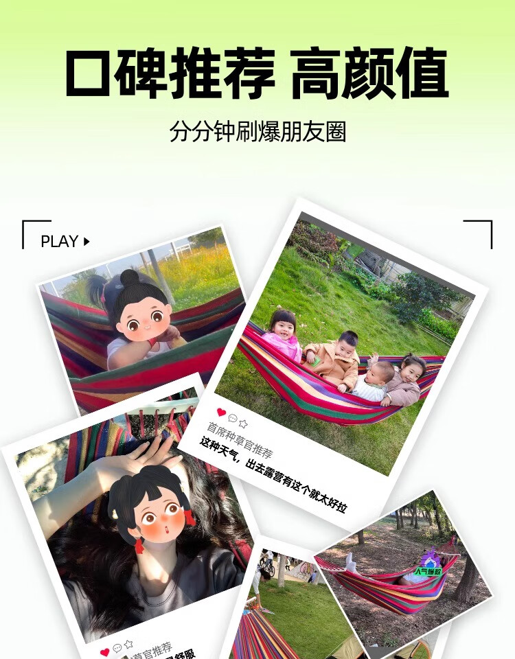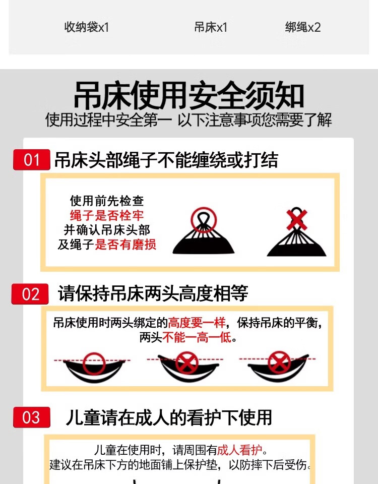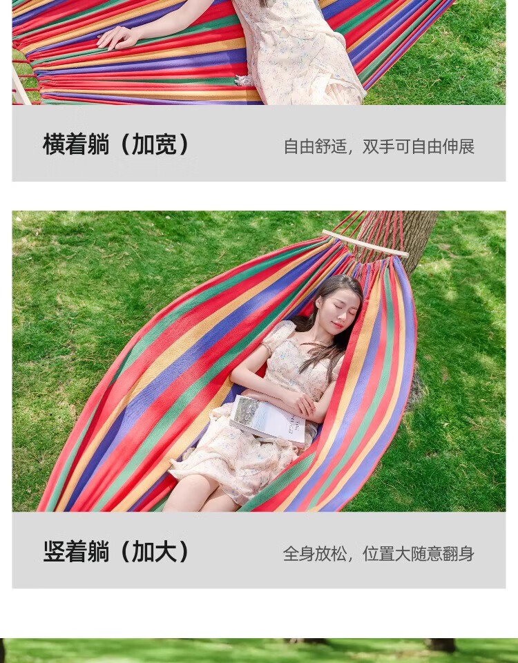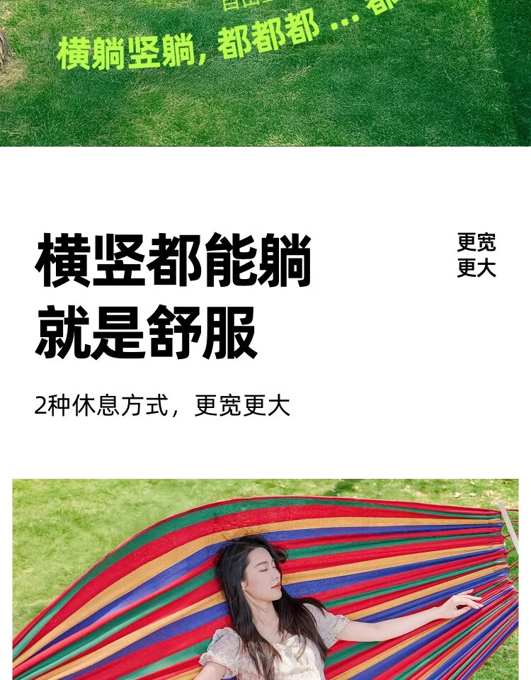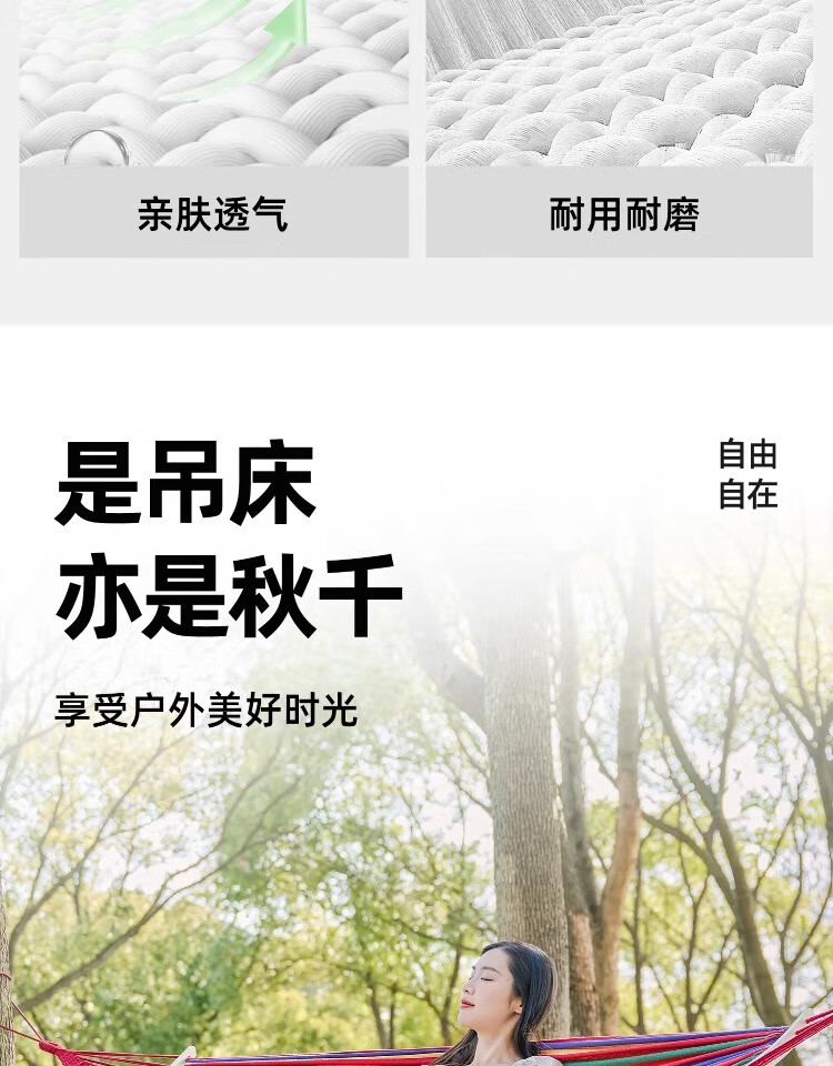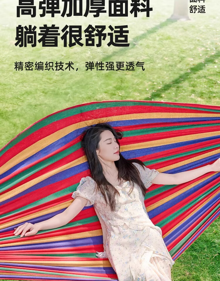 这已经是第二次回购了,第一次买来绑在树上拴着拴了,看了一下价格确实是挺合适,而且质量也特别好,躺在上面完全不用怕摔下来,所以说我又下单又买了一个,因为适合咱们这些户外的人