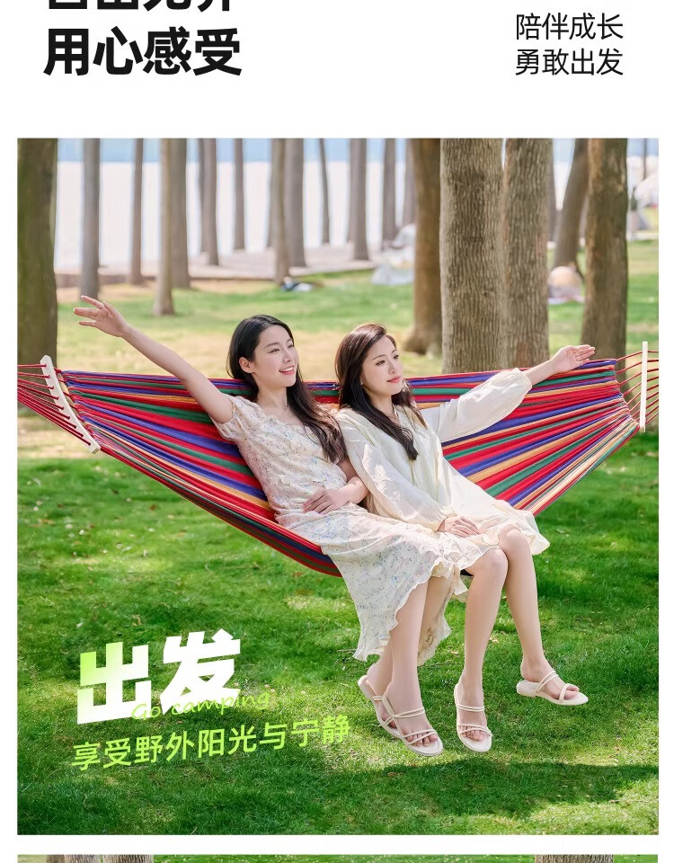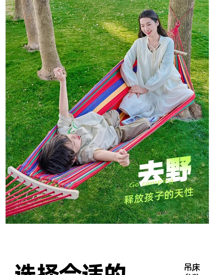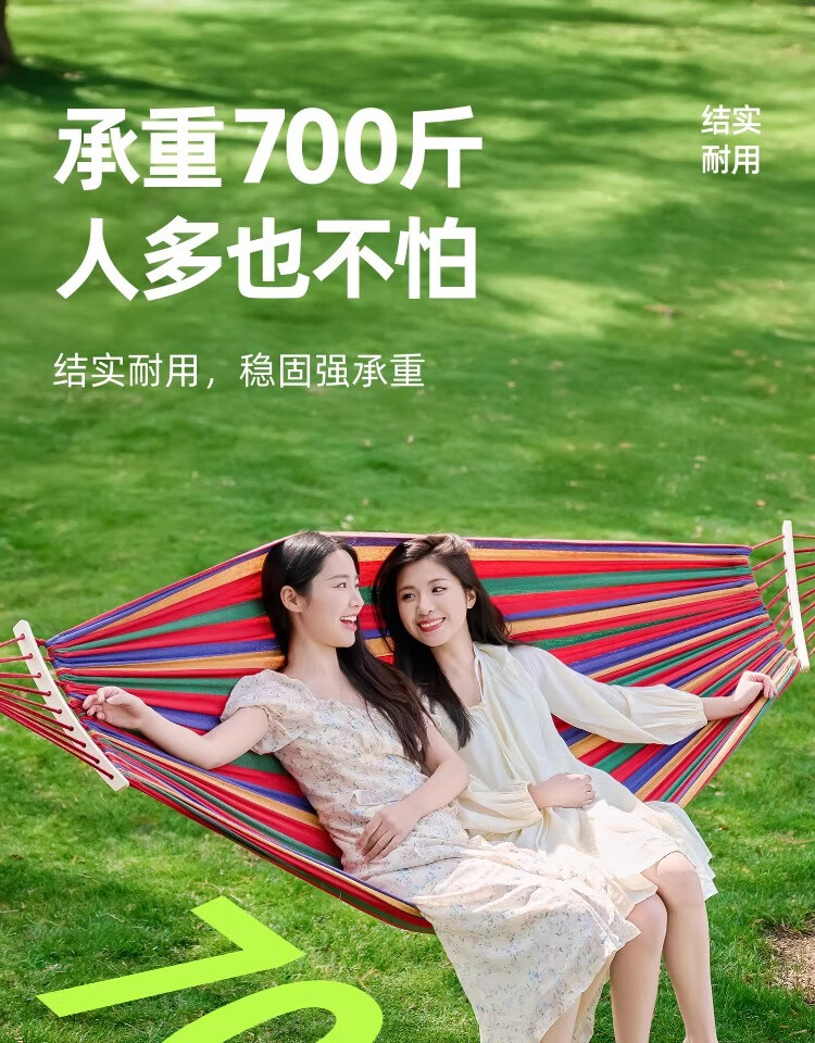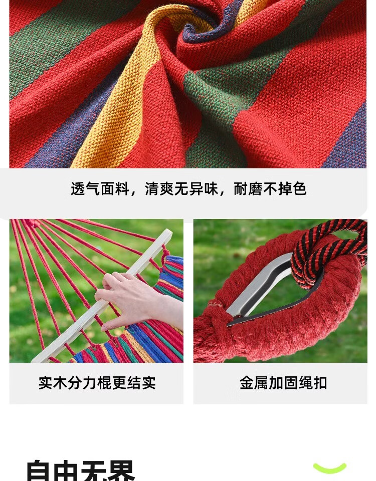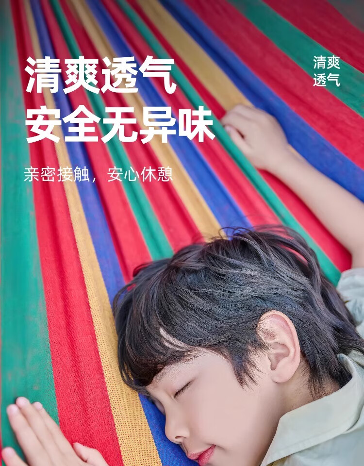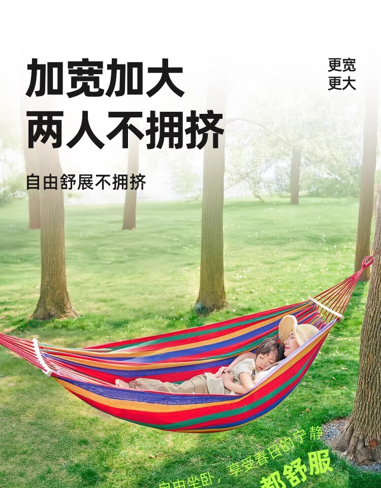 探险者吊床户外成人加厚双人防侧翻露营吊床透气室内儿童网床秋千 双人彩虹加厚吊床(加粗绑绳)