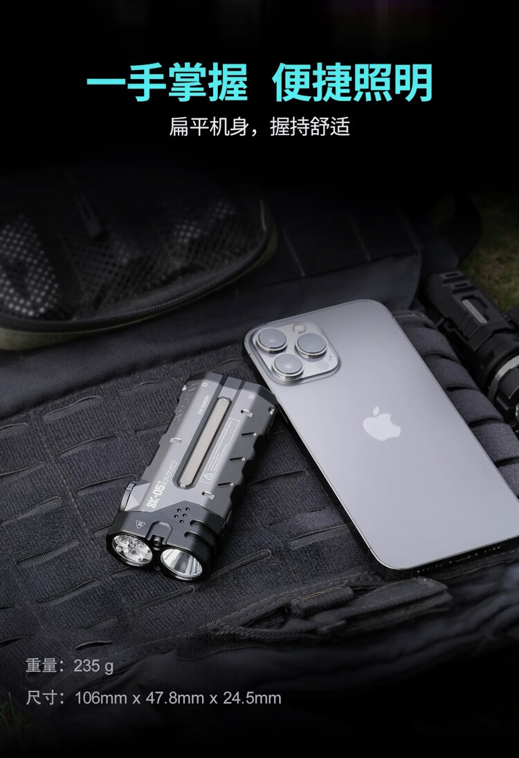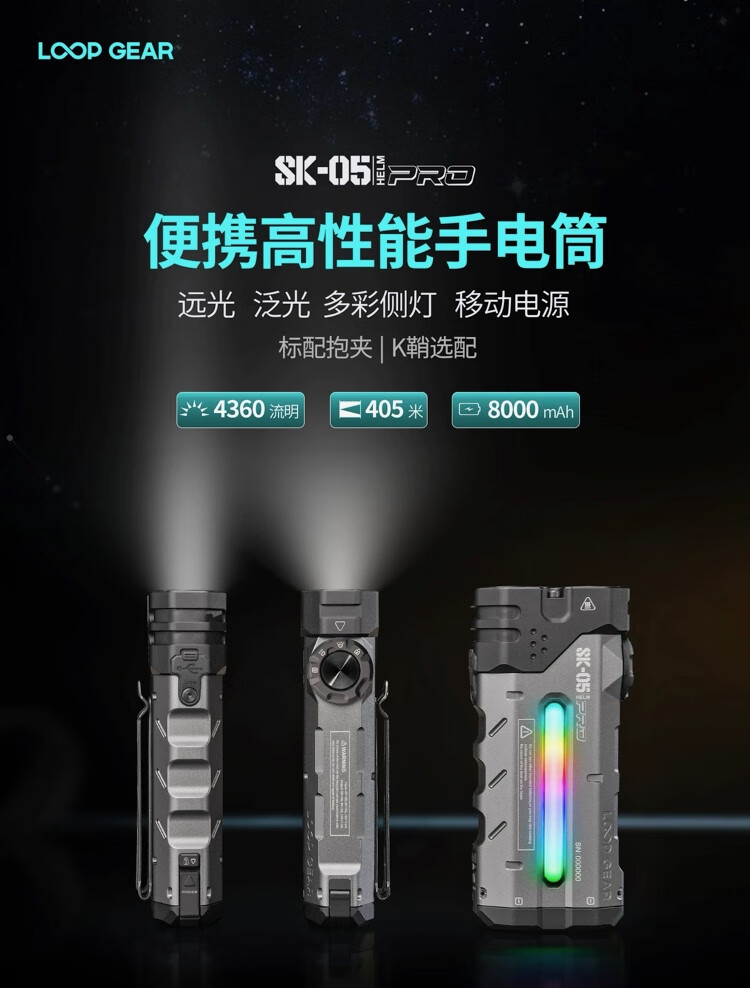LOOP GEAR户外多功能手电筒远射强光充电超长续航SK05PRO银色 SK05PRO银色
