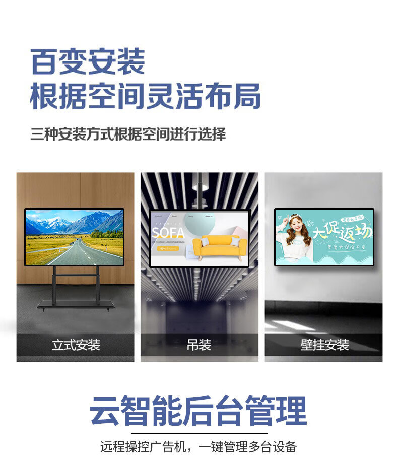 19--100英寸广告机显示屏吊挂奶茶店宣传屏电梯广告机壁挂立式横竖屏显示器ERP生产车间电子看板 75英寸网络广告机(旗舰版)