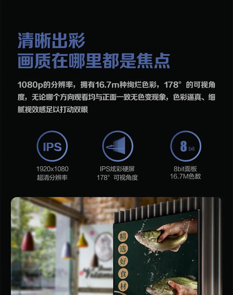 广告屏质量很不错,画质高清,挂在店里效果很好,很满意,快递很快