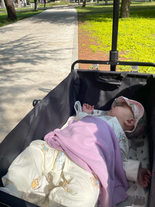 我儿非常喜欢这个小推车,本来计划孩子大点露营的时候用,赶上假期提前入了这款车,能拉东西也能拉娃,小家伙很喜欢这个车车,但是拍的有点小,我家宝宝74厘米斜着睡进去也有点躺不开,建议买最大号,就是没有收纳袋