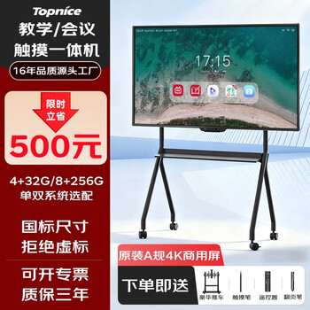 托普莱斯 会议平板一体机触摸屏多媒体教学一体机电子白板视频会议4K超清智慧办公大屏 55英寸(国标尺寸)拒绝虚标 4K安卓-4G/32G(商务会议推荐)