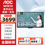 AOC4K超清多媒体教学一体机 会议平板白板电视 幼儿园教育培训 希沃白板软件触摸55 65 75 85英寸 55英寸【4K超清】四代i5 8+256+壁挂款