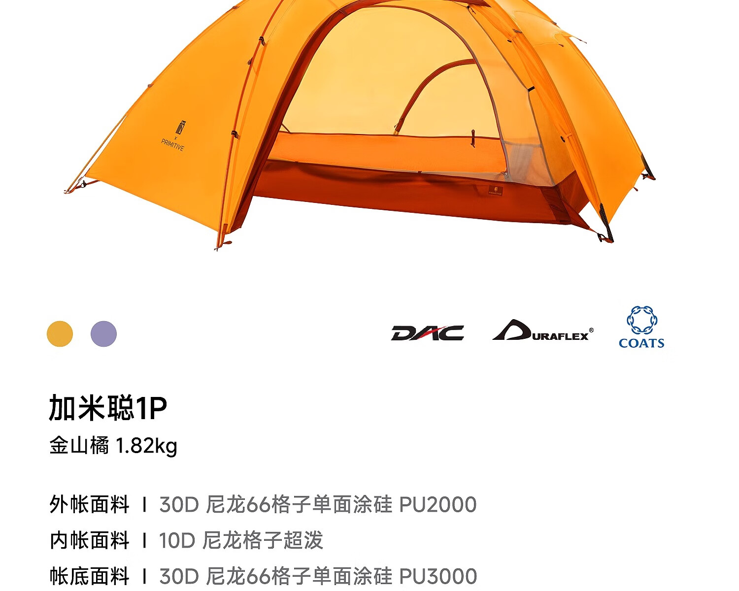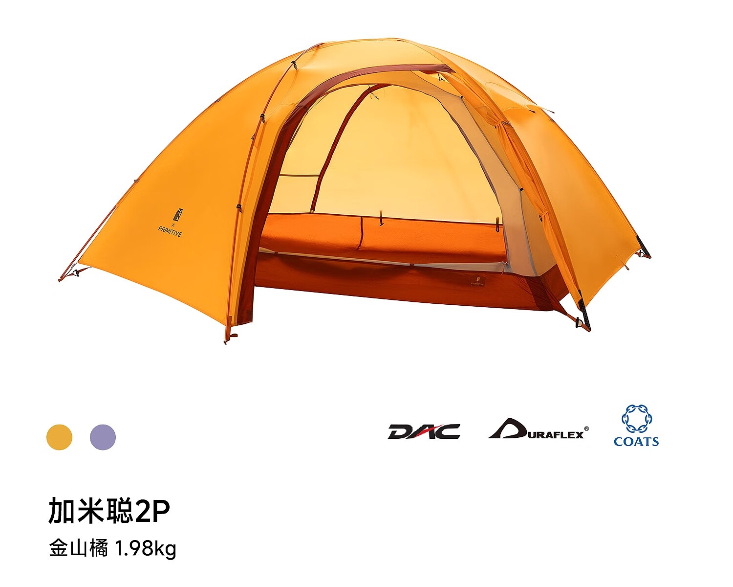 原始人徒步帐篷加米聪轻量化户外便携式登山野营过夜专业防风新款双单人 金山橘【加米聪1P】