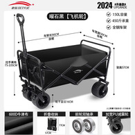 北岳露营推车户外可折叠营地车大摆摊手拉车小推车野餐野营拖车桌板 曜石黑【升级加厚飞机轮】双刹
