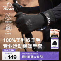 伯希和(Pelliot)户外手套登山冬季骑行男女美利奴羊毛保暖可触屏防风164331003黑M
