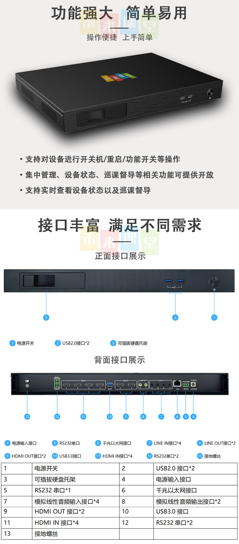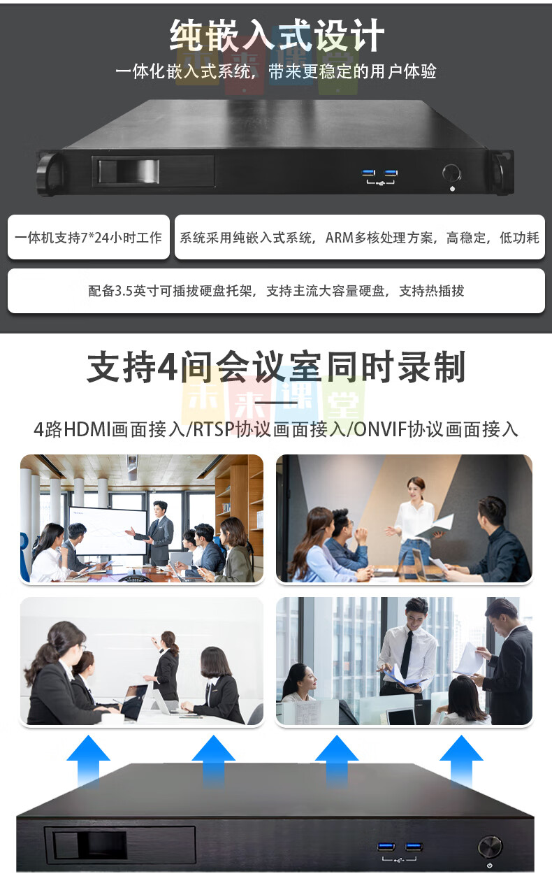 未来课堂4路高清会议录播机多功能厅国产化嵌入式录播一体机 视频会议录播机 内置课堂语音转写系统 录播方案
