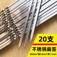 润华年不锈钢烧烤签子扁签户外羊肉串烤肉钢签铁签工具全套用品烧烤针 28厘米扁签(20只)