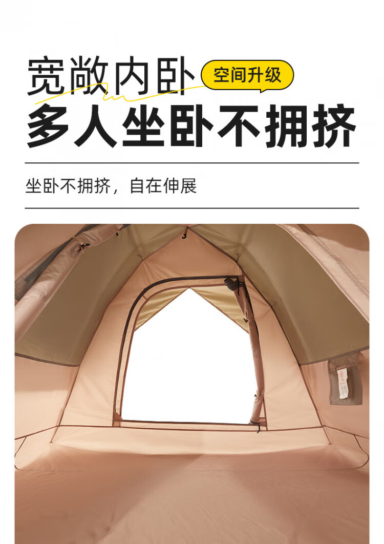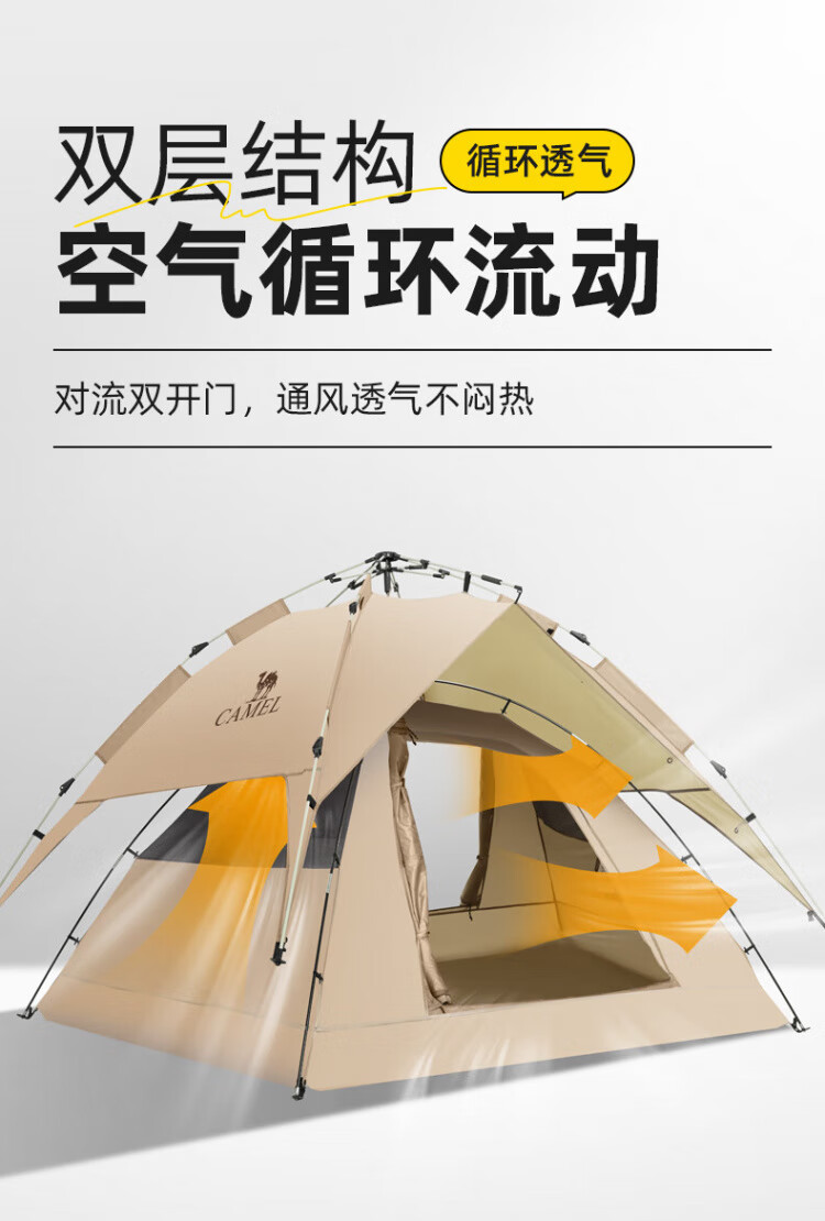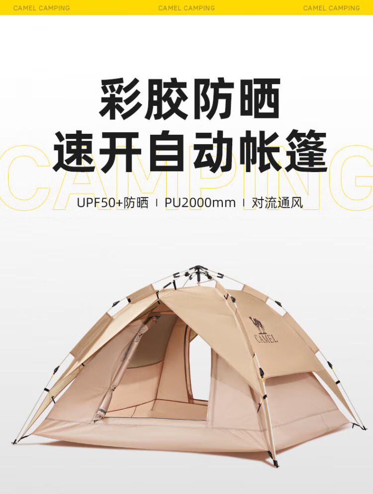 骆驼【果冻彩胶】帐篷户外野营便携过夜3秒速开双层自动帐篷装备 流沙金/奶酪色,A1S3NA111A5