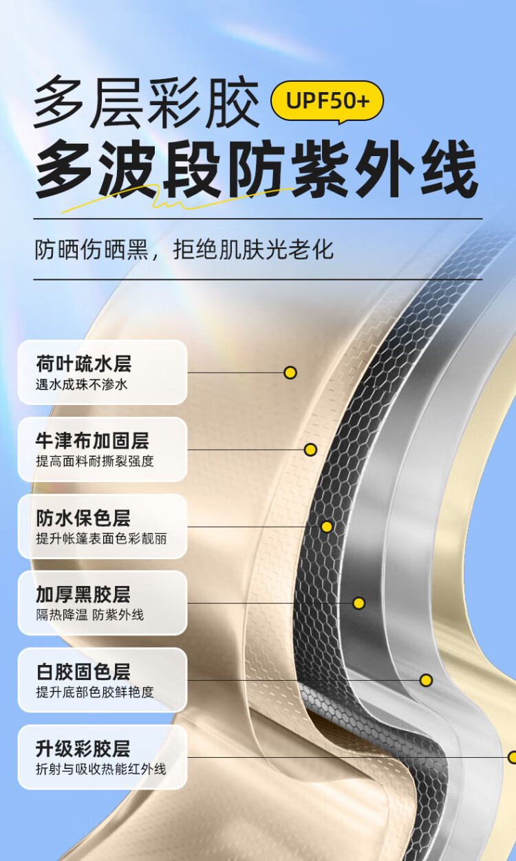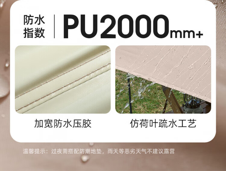 柏潮户外天幕便携加厚黑胶银胶野营野餐抗风防雨遮阳棚露营装备 卡其色 涂银款天幕防雨送全套工 方形长0.36*0.36米丨1人用