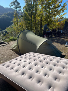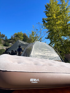 这周末带着新买的充气床垫,在我们当地的600米海拔山顶露营过了夜,简直太给力了,充气只需3分钟搞定,而且没有出现塌软,密闭性非常棒,铺上毛毯,一夜睡的很舒服,对比来,对比去,还得是原始人,这品质基本和某客某迪露营品牌一样,性价比太高了,大道至简,相信你们会越来越好。