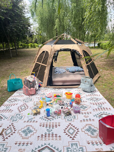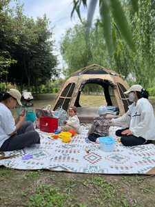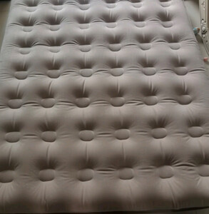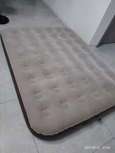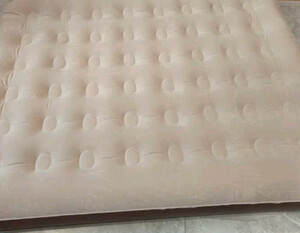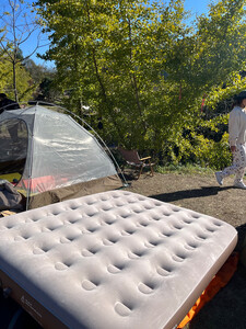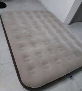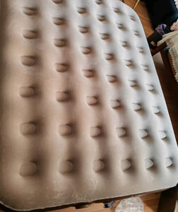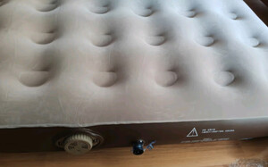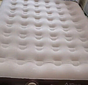 这款充气床垫用来露营很适合,充气很方便快捷,1-2分钟就好了,放气也很快,收折起来方便不占位置。床垫可以睡两三个人,防水效果很好,床面是绒面的。
