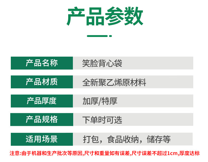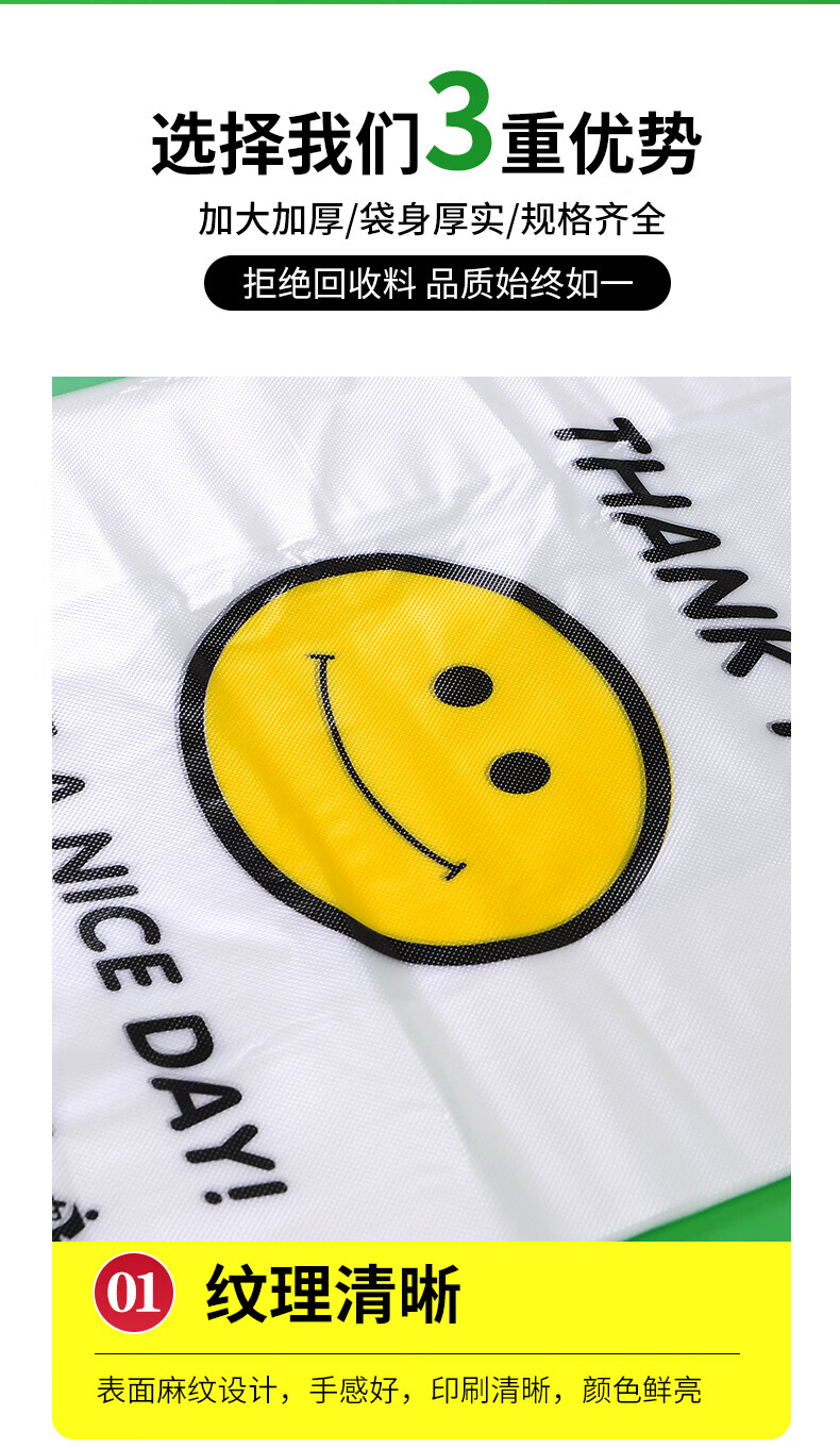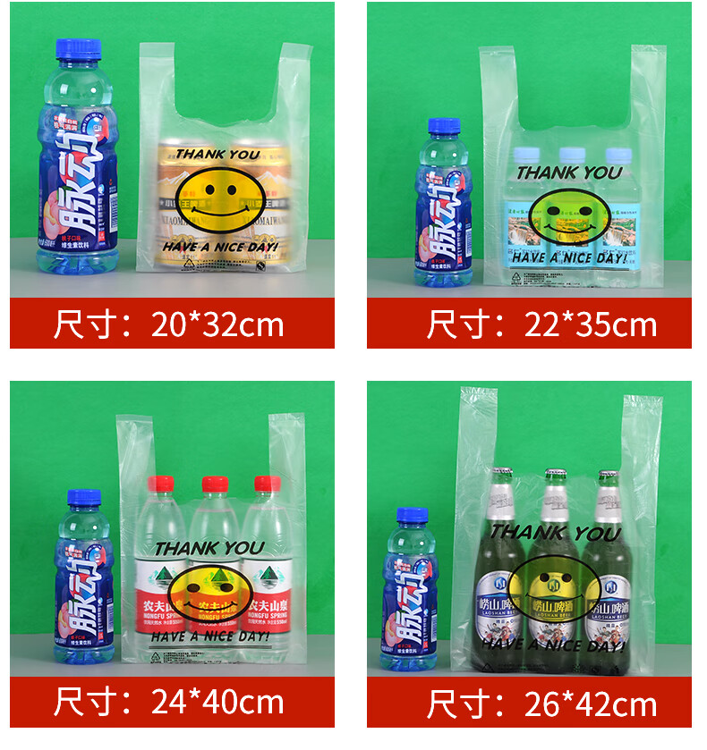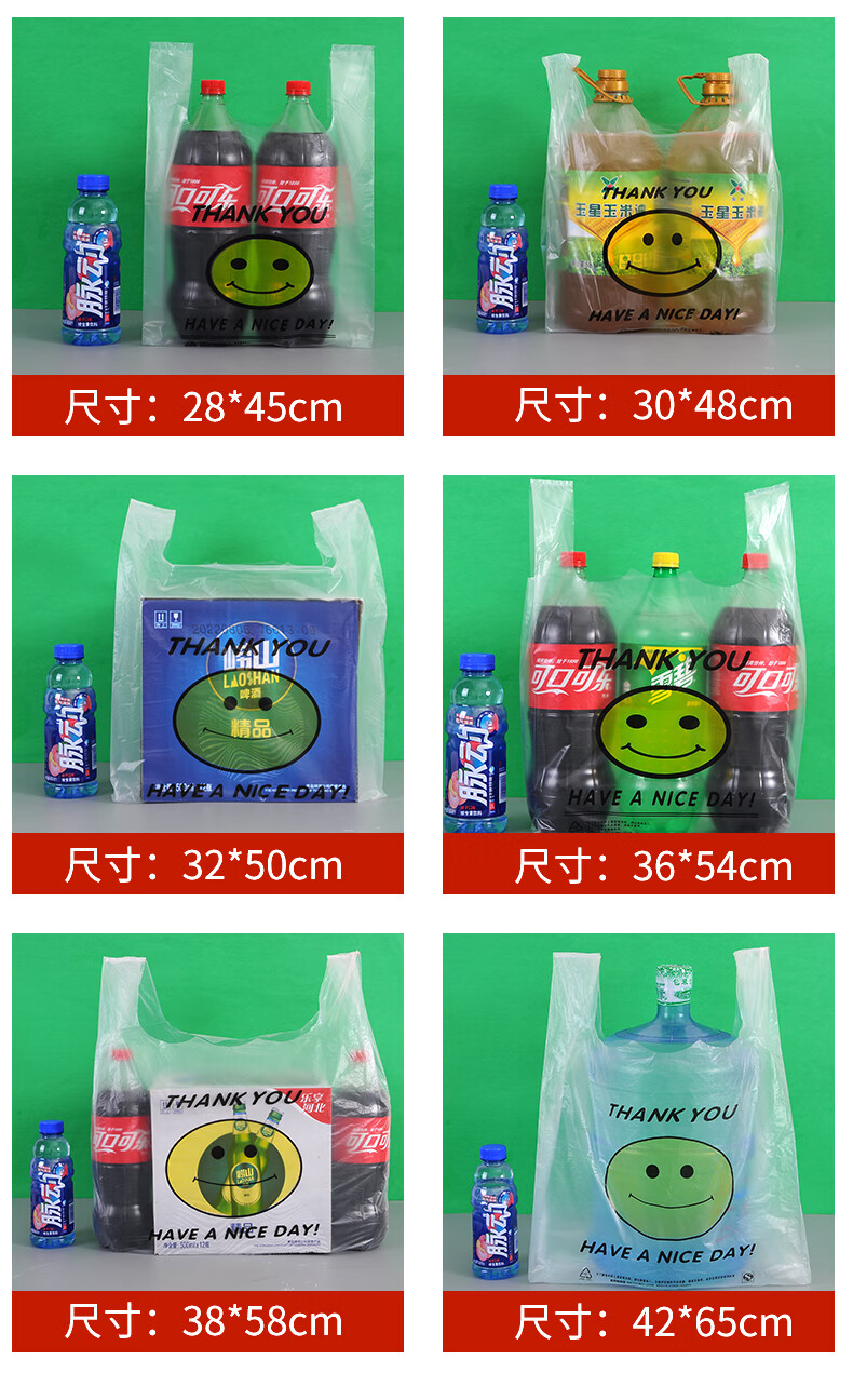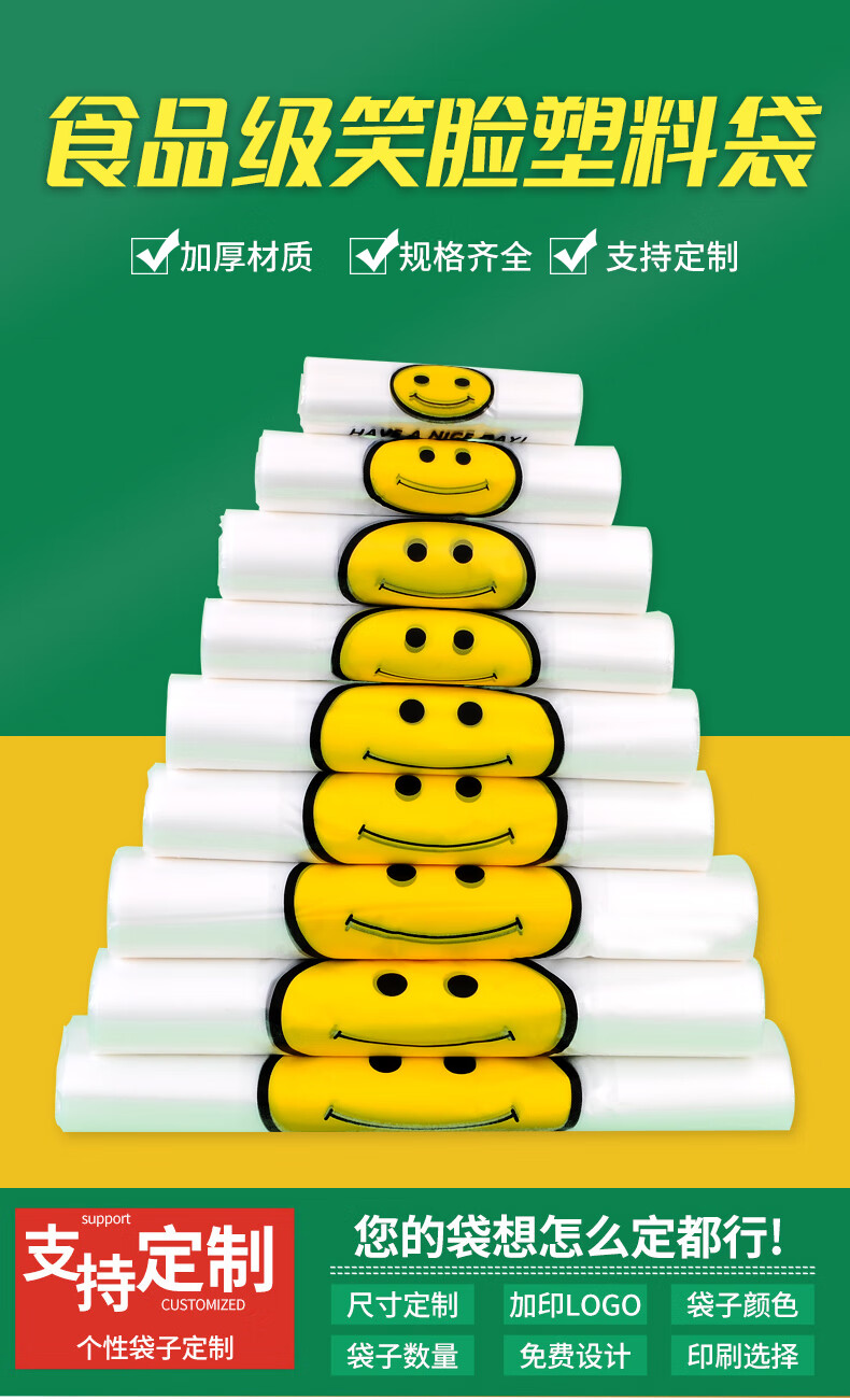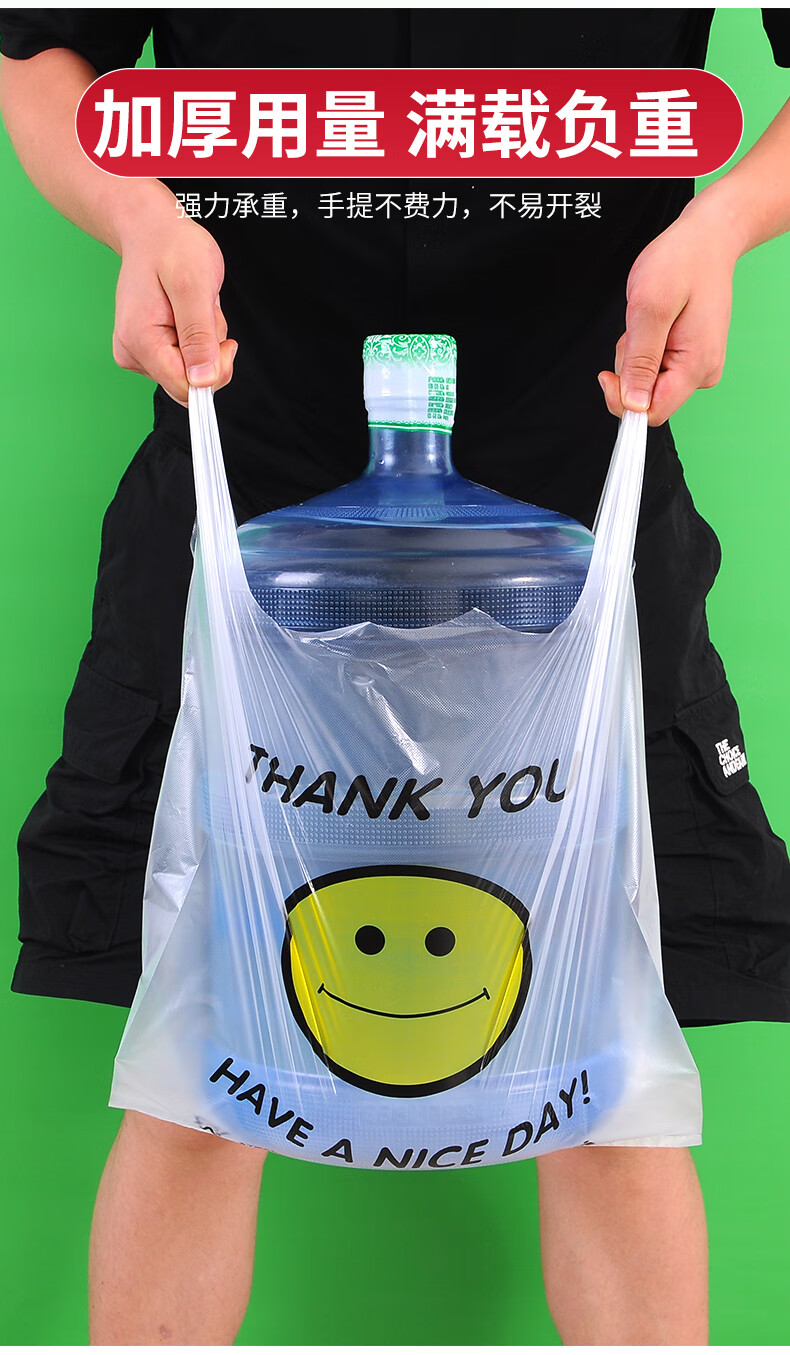 透明笑脸袋背心手提袋出游打包袋超市购物袋塑料袋食品袋一次性 20*32cm 200只 中厚1.5丝