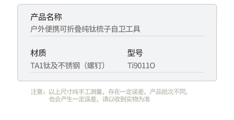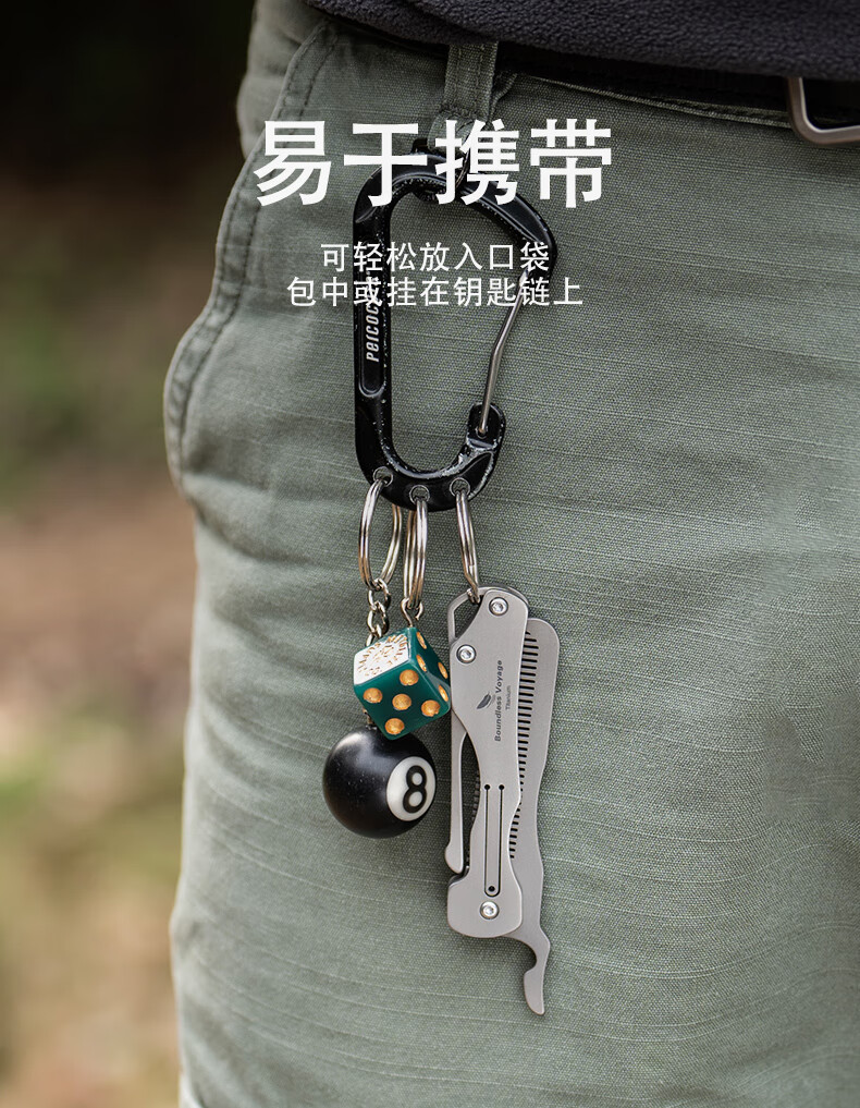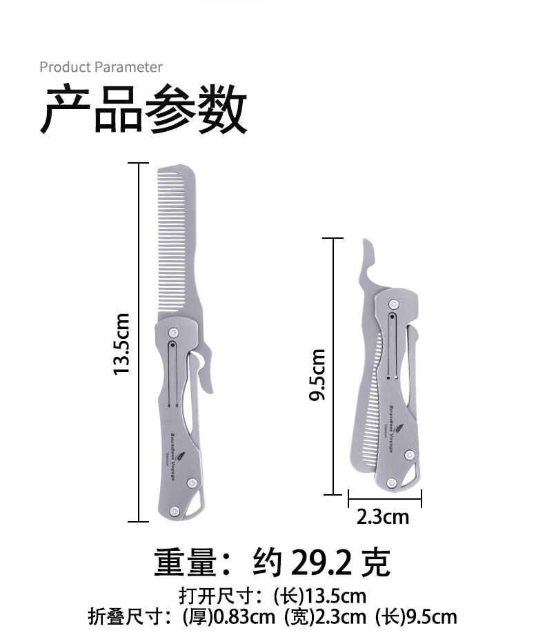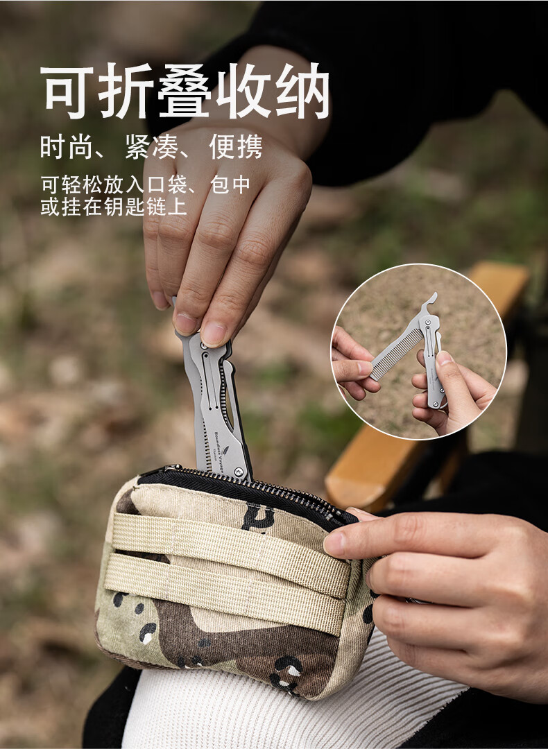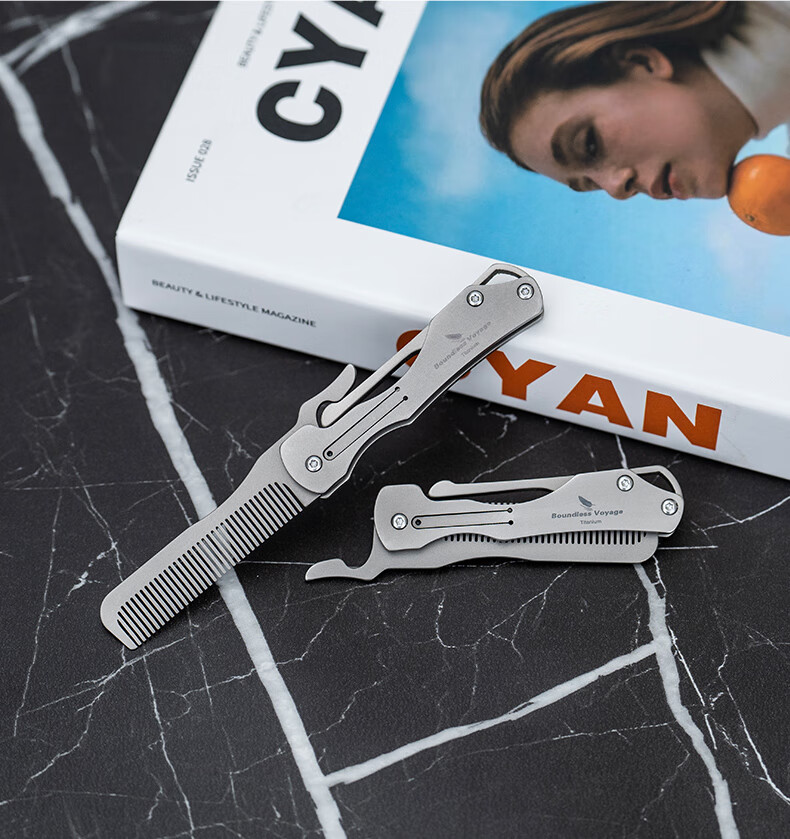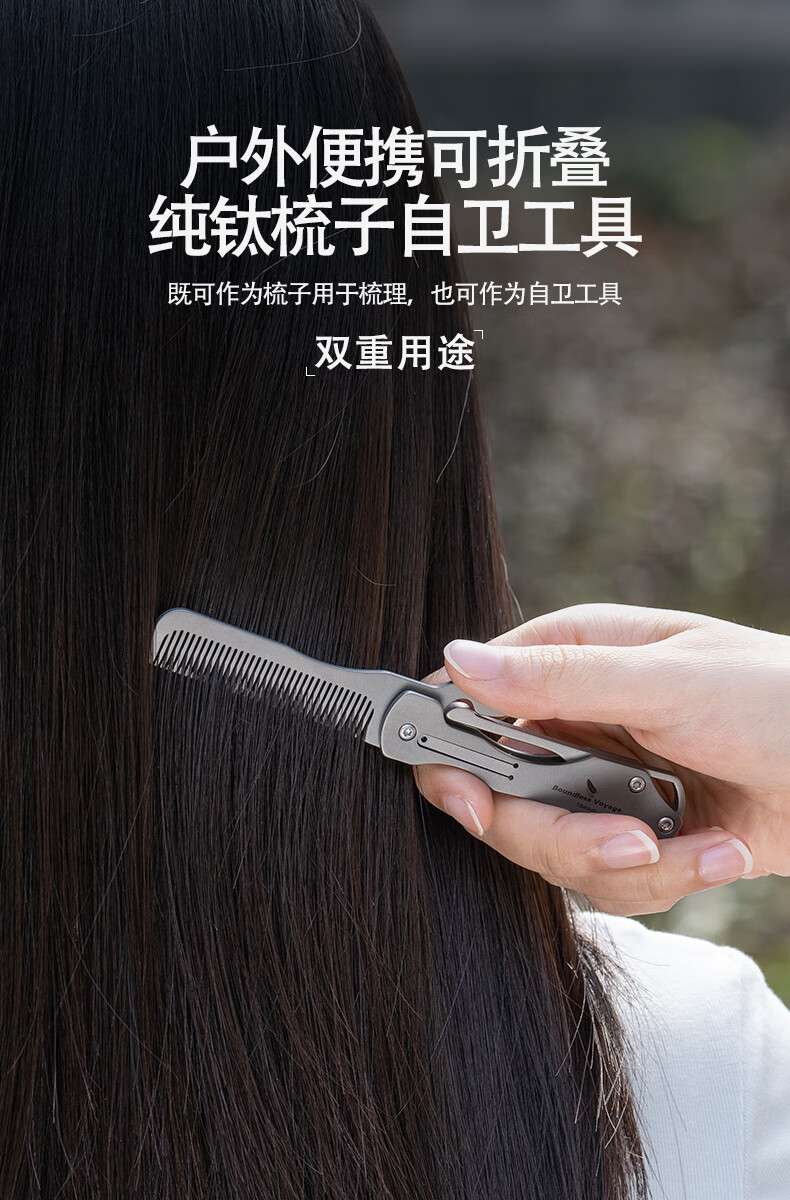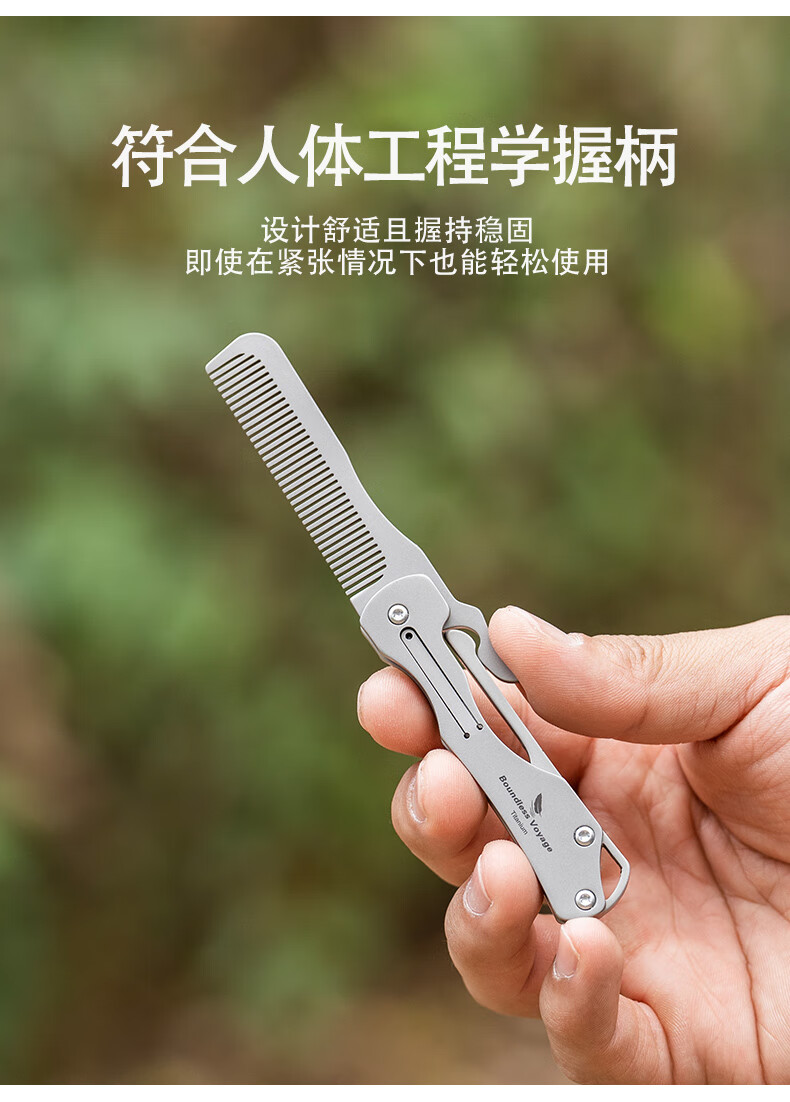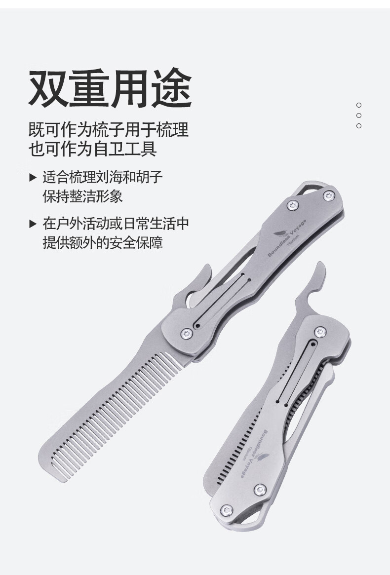 必唯纯钛折叠梳子便携式户外多功能小工具自卫络腮胡迷你旅行梳子 Ti9011O