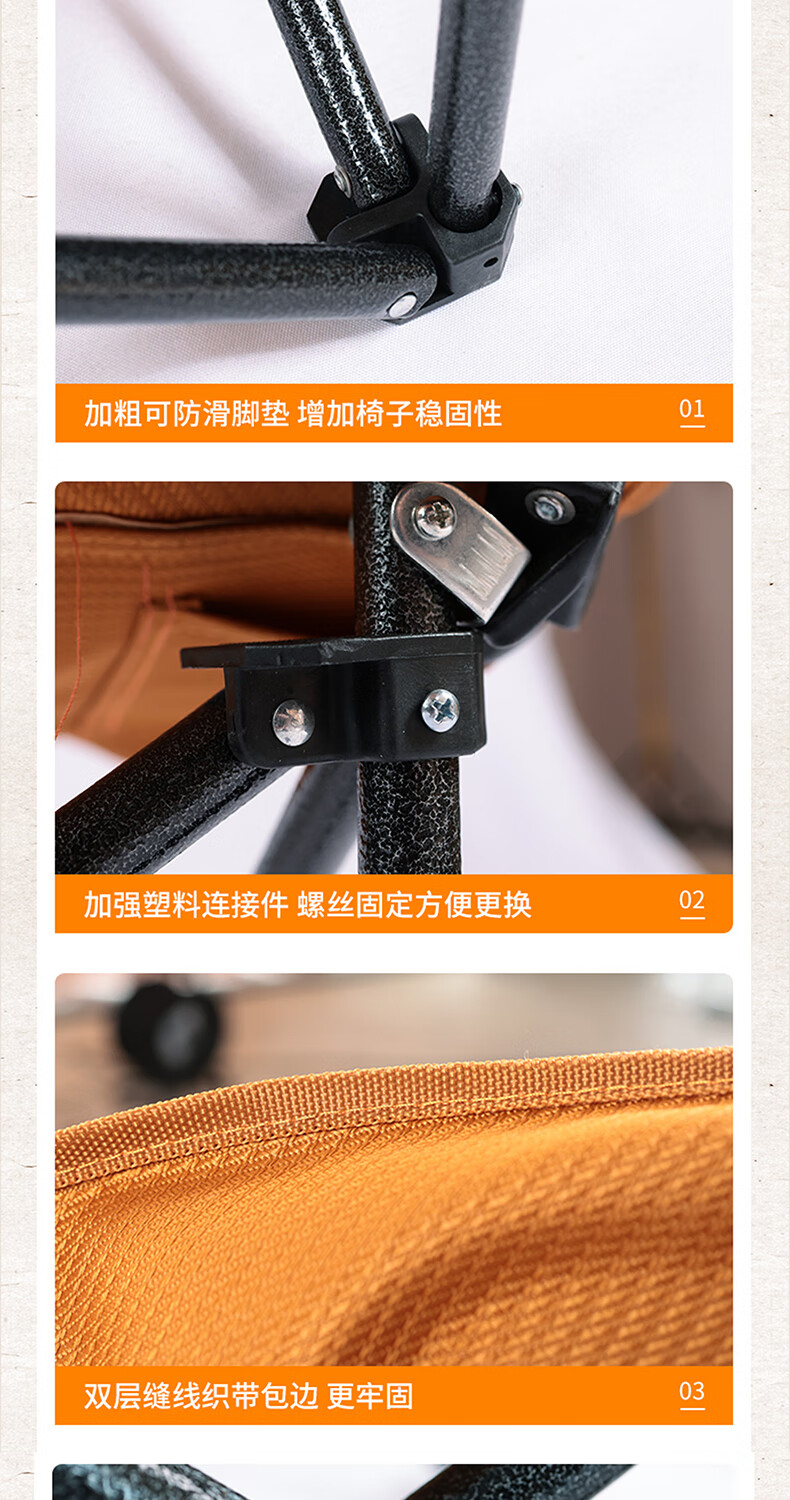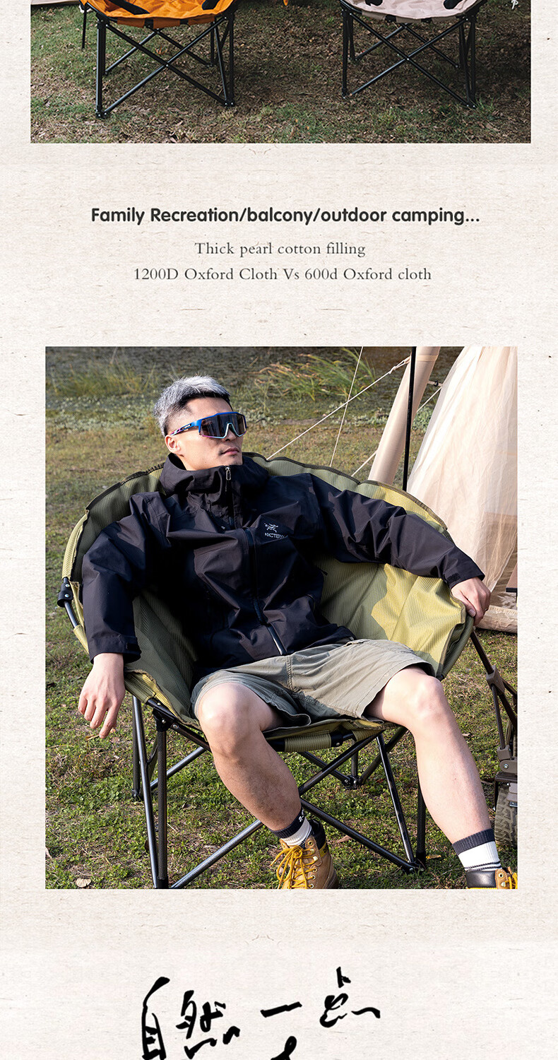 🌕 外观:优雅的半月形设计,线条流畅,为户外空间增添艺术感。 💺 舒适:透气材质,倾斜角度适中,长时间坐卧不闷热,身心放松。 🎒 便携:轻巧折叠,露营野餐的理想伴侣,轻松携带。 💪 耐用:高强度材质,承重能力强,抗风性能佳,恶劣天气也稳固。