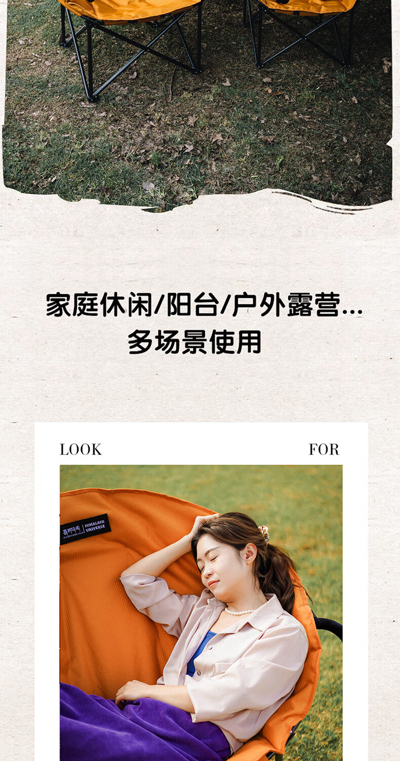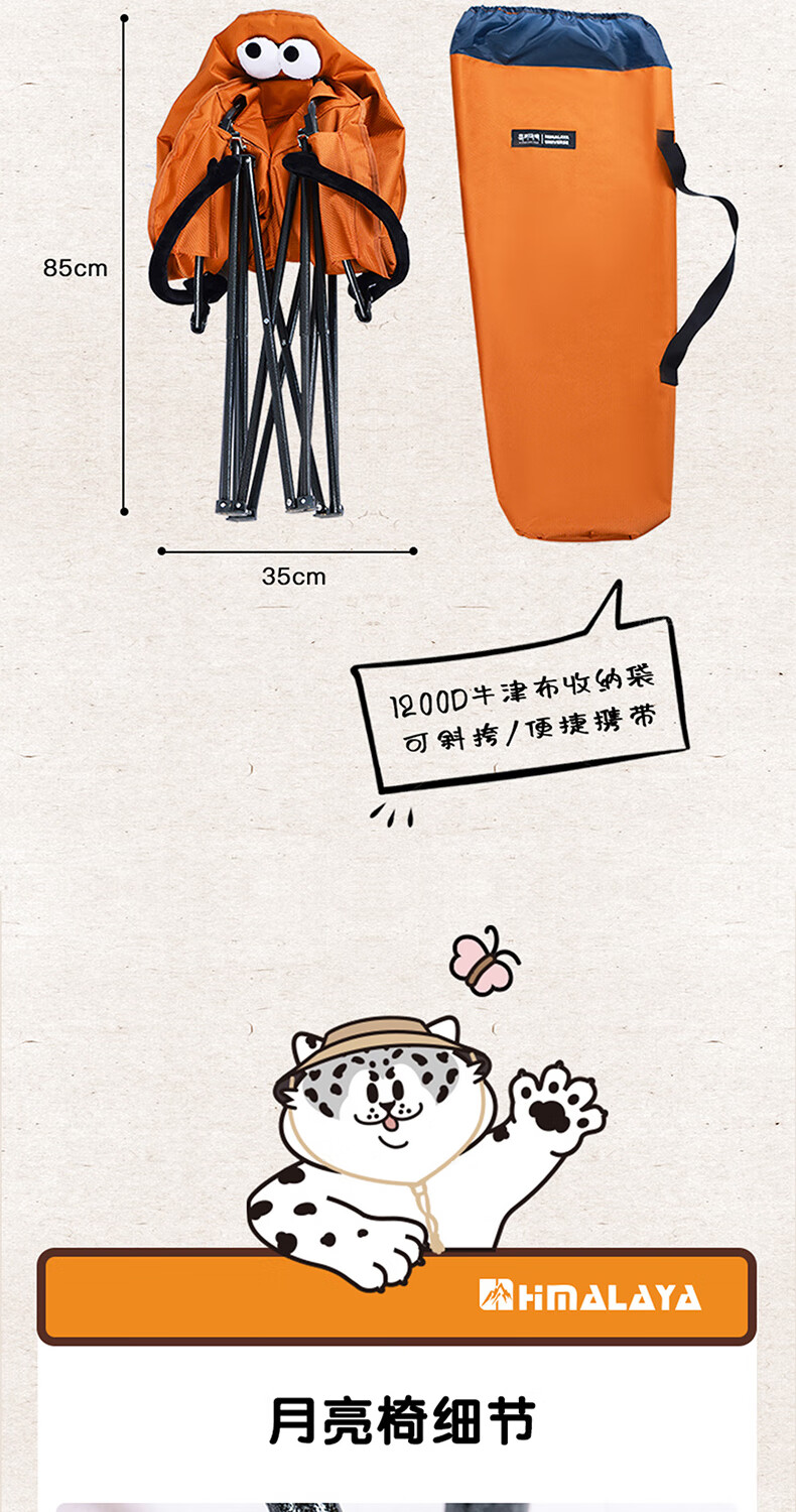 喜马拉雅折叠椅便携凳子户外椅子露营野餐椅月亮椅折叠沙滩钓鱼椅导演椅 【中号椅*蜜姜色】加宽坐感舒适