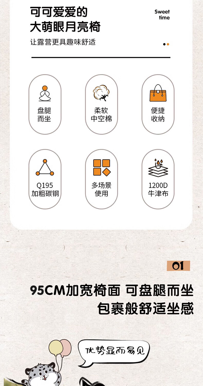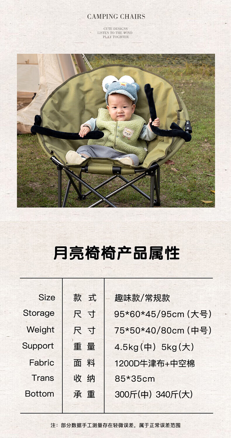 哇塞!这款月亮椅真是太棒了,颜值超高,也很舒适,坐上去感觉很放松,软软的,可以盘着腿坐上面看书,个人感觉坐上去包裹性比较不错,搭配我的帐篷,小孩很喜欢。出门携带也很方便,周末带孩子去公园露营玩,还有人过来问我在哪买的,看着很可爱,这款椅子强烈推荐!