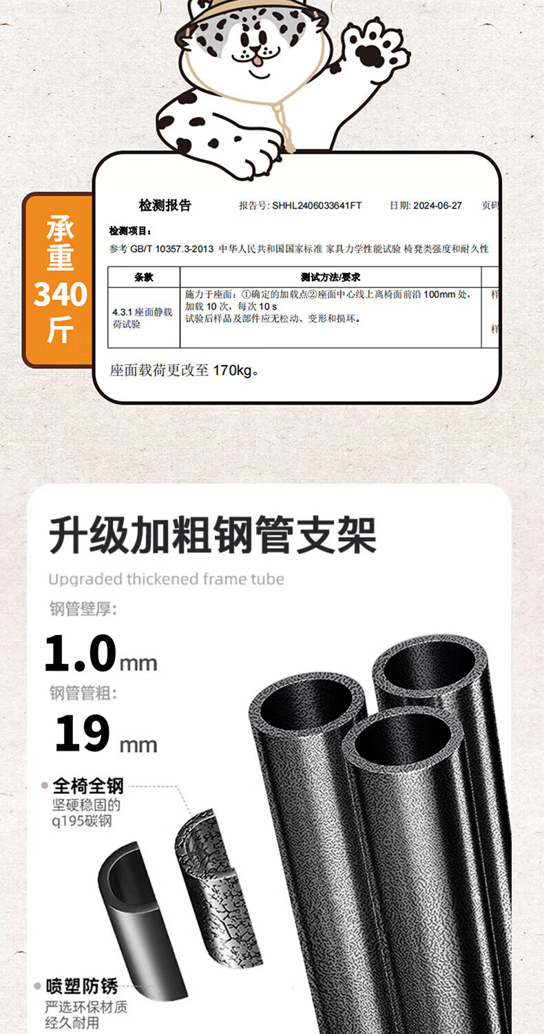 非常美妙的舒适感 像是在沙发里一样 包裹性极好 又不失宽松度 有极强的稳定性 瓷砖地面没有一丝晃动 整个布面在环形支撑架上有9组支撑 可以保证稳固性 完全不用担心因为一两组断裂造成伤害 布料相当厚实 1200D的双层牛津布密实 安全 即使填充了中空棉保证坐感的同时 也没用损失散热性能 钢架非常厚实 每个落地点都有3组支撑架 非常安心 总体来说是非常好的产品 链接件不知道什么材质 但是感觉非常光滑结实 密度很高 金属件看不出材质 但是更换应该也方便 坐标北海 这边气候相对潮湿 希望金属件能够不生锈 总体来说是在月亮椅里算是数一数二的材质和做工了 感谢喜马拉雅带来的美妙产品 产品五星好评 唯一不舒服是因为快递点在小区另一头的对面 单趟就要走900米 中通快递直接放在快递点 箱子非常大 不好拿 硬是从快递点用了20多分钟拿回来 北海中通极差评 一分都不想给 也请商家谨慎发中通快递