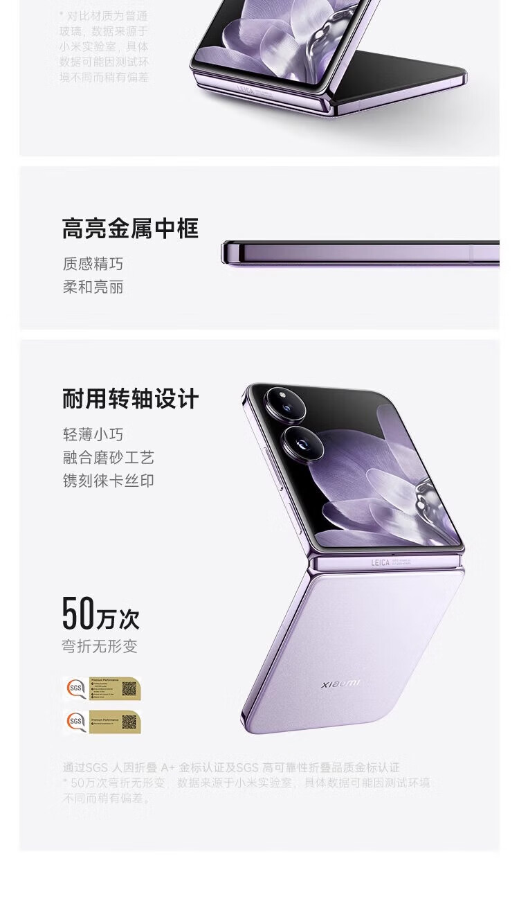 小米小米 Xiaomi MIX Flip 小折叠4.01英寸多功能超大外屏拍照AI 手机 幻影紫 12GB+256GB x 5G通