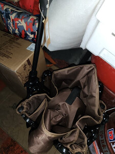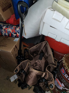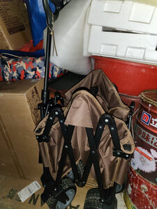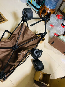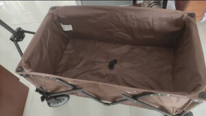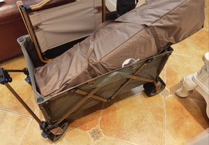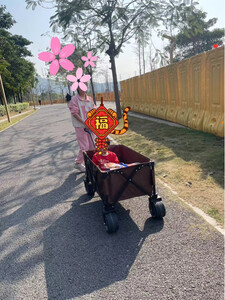 露营车自重挺重感觉架子挺结实的,超宽的轮子看着就大气结实,收纳起来放后备厢也不占地方,车斗又大又深挺能装东西的