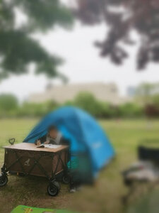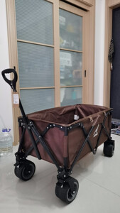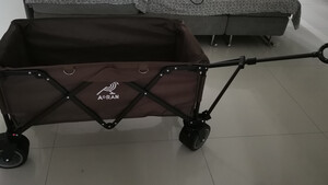 网上那么多露营车 还是选择了奥然 感觉性价比很高 这款收纳起来的外观也很不错 我给大家看一下 轮子的话又宽又大 真的超级适合在带去露营烧烤的呀