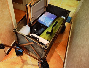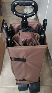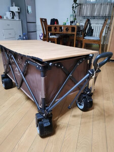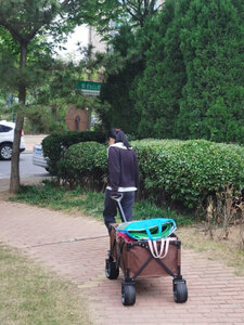 东西收到,高度够,深度够,轮胎够大,够越野,提醒一点,向前拉还好,后退就有点吃力,而且一不下心看到图片有桌板,结果收到却没有,大家下单要看清楚