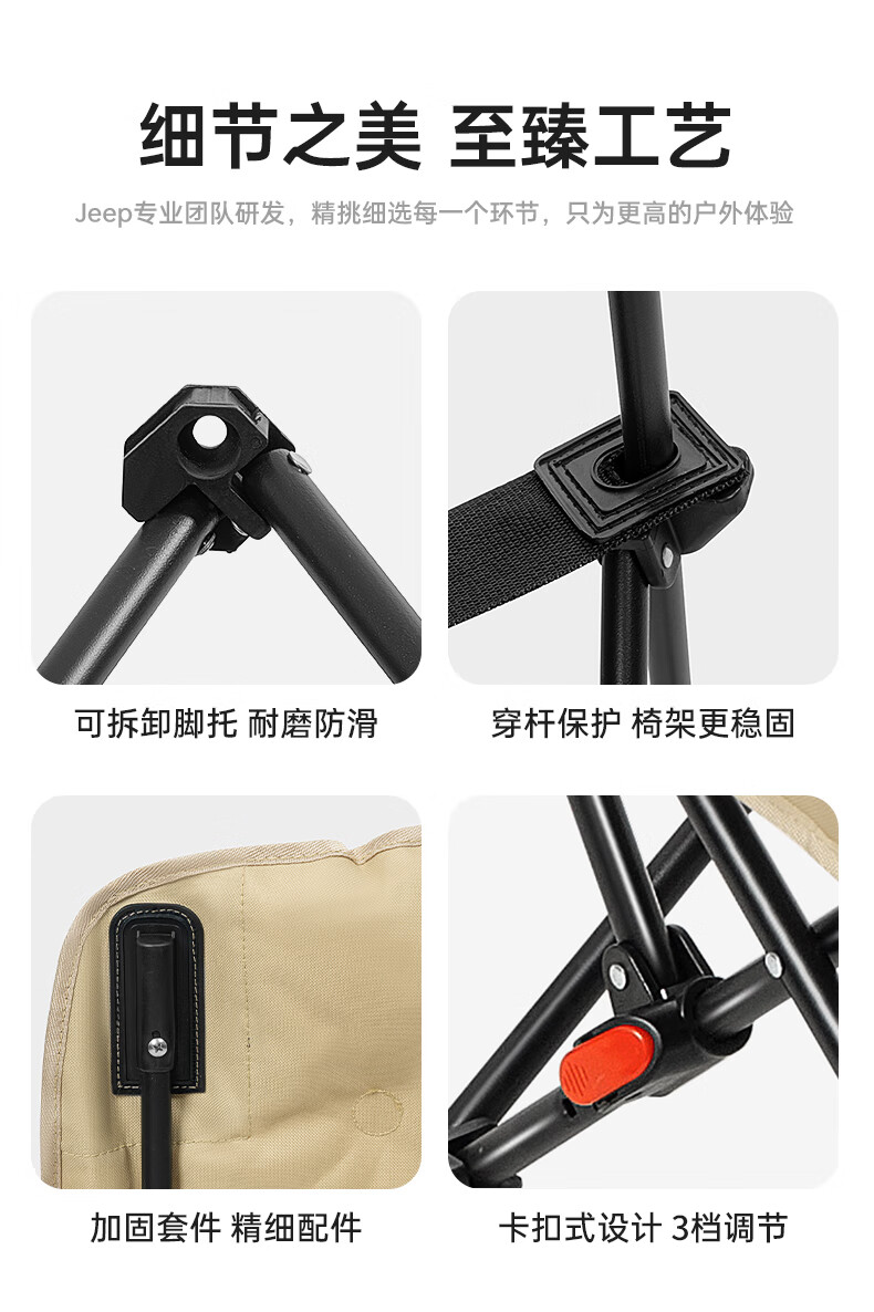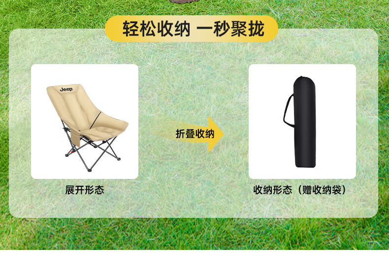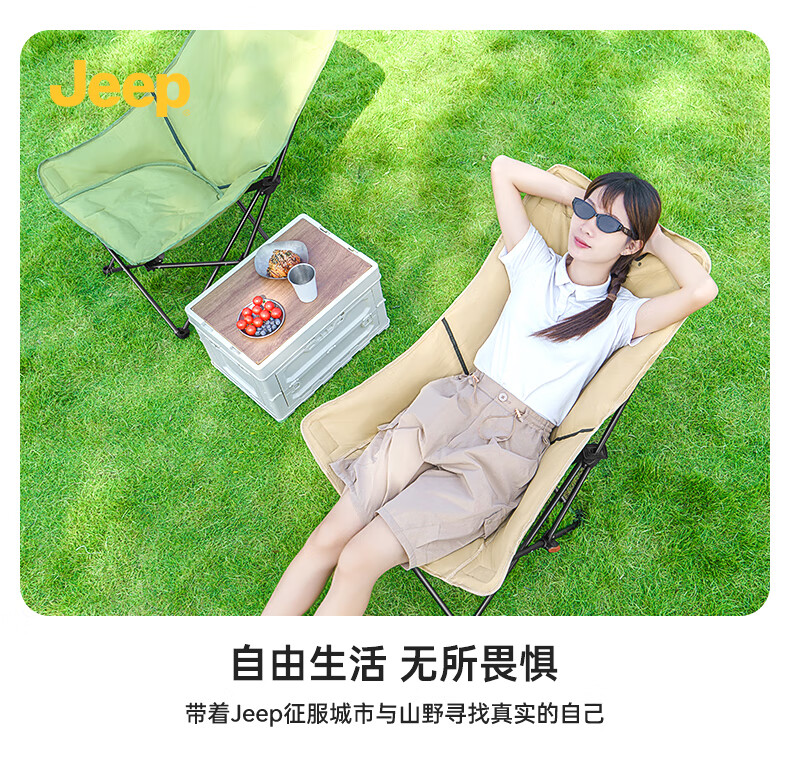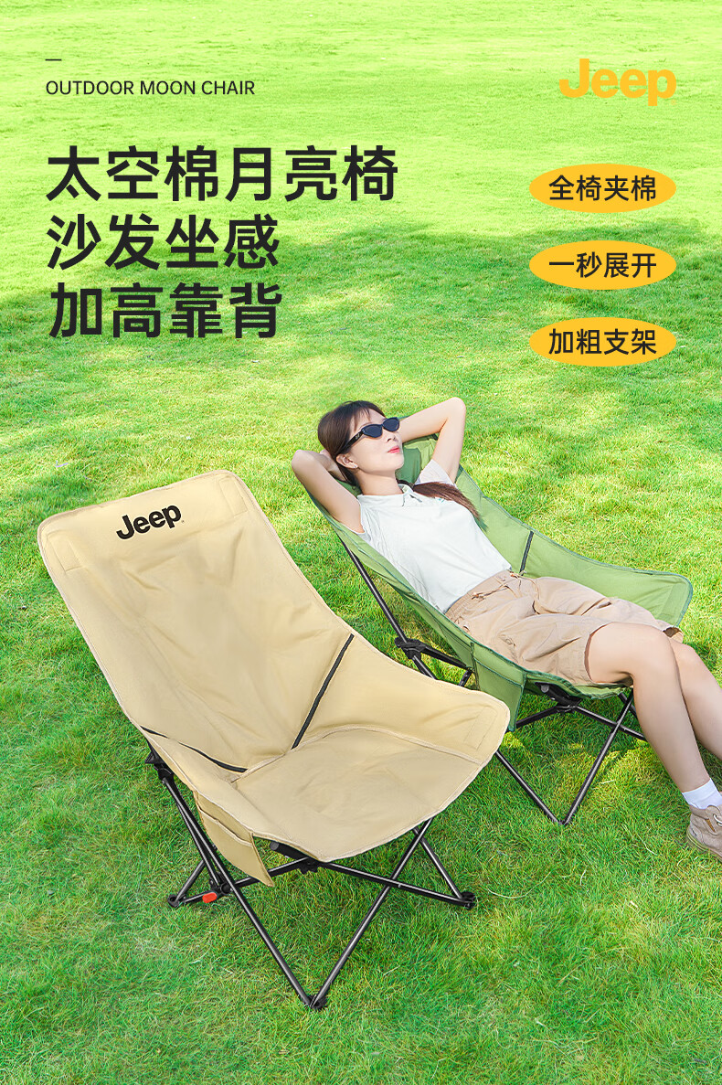 JEEP月亮椅露营椅子户外折叠椅便携式躺椅钓鱼凳沙滩椅野餐桌椅 可调节高背月亮椅【细沙黄】