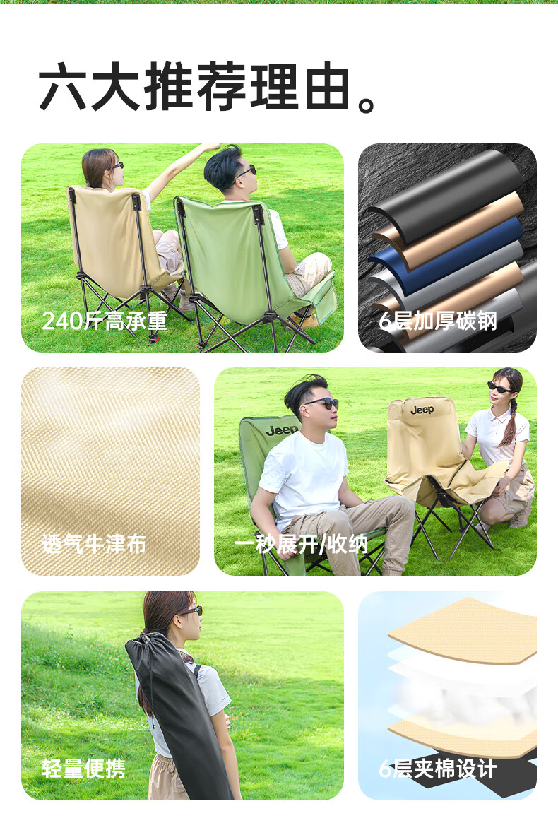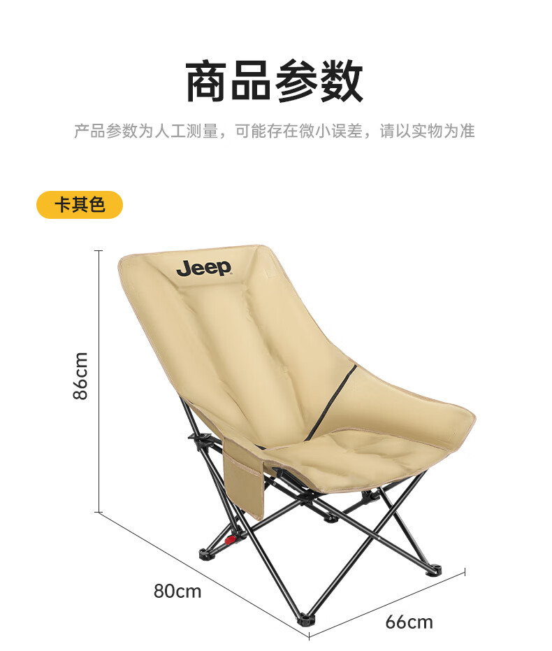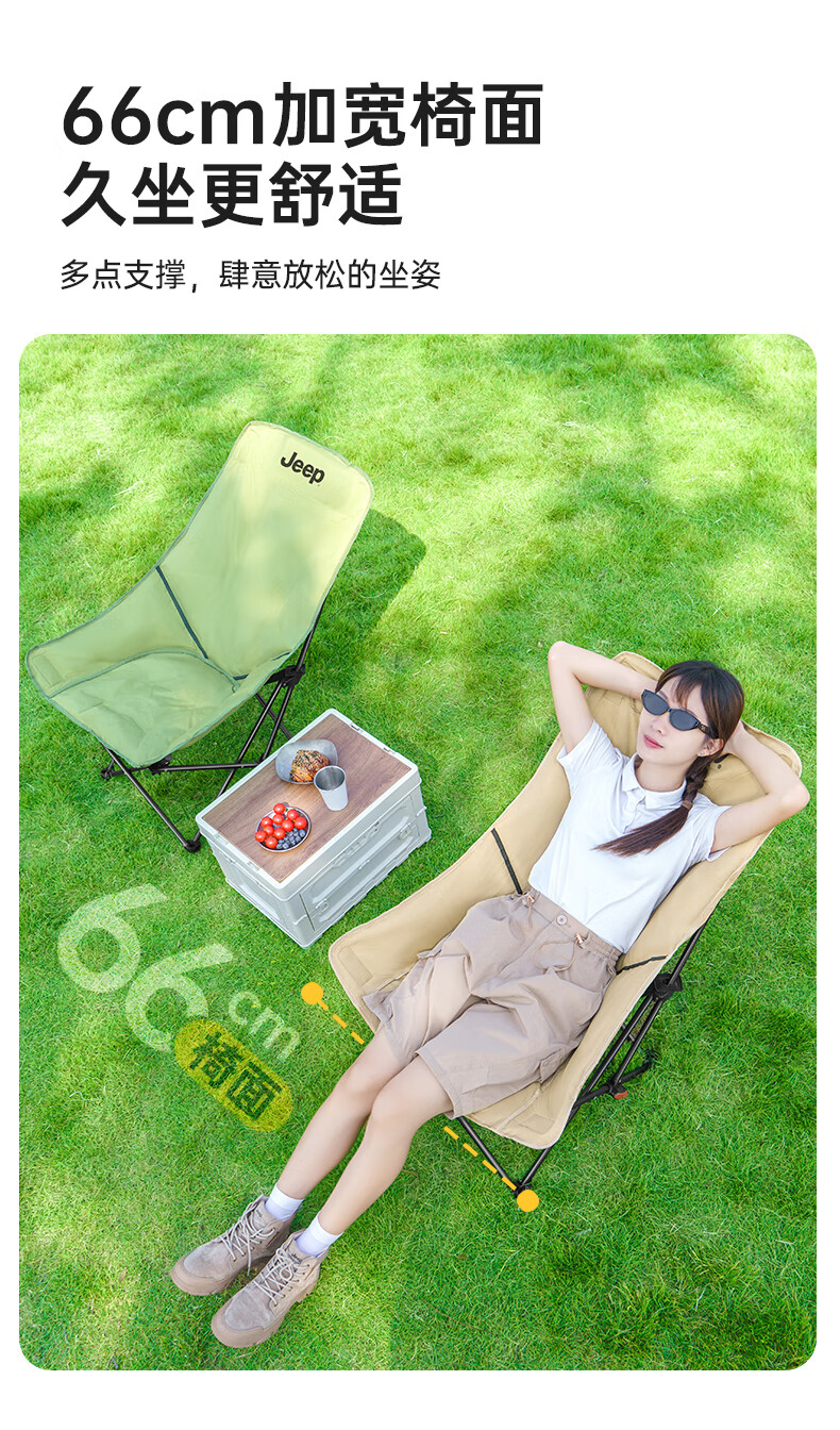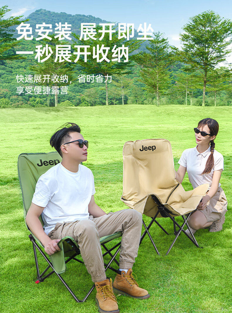 JEEP月亮椅露营椅子户外折叠椅便携式躺椅钓鱼凳沙滩椅野餐桌椅 可调节高背月亮椅【细沙黄】