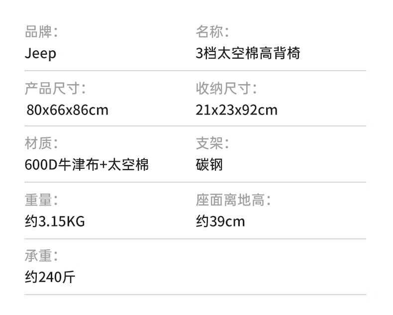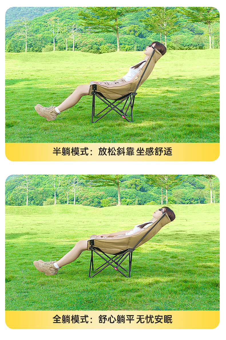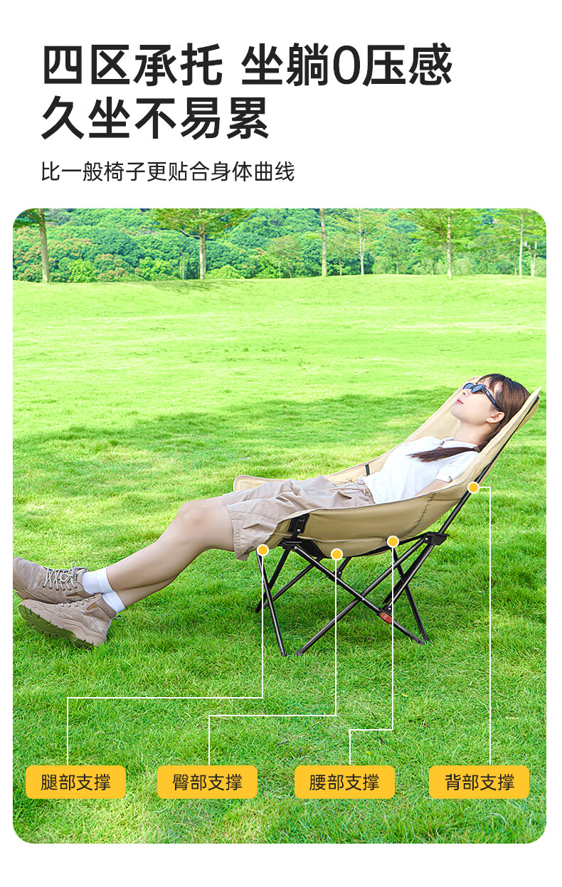 JEEP户外太空棉月亮椅露营沙滩躺椅钓鱼椅折叠家用便携折叠午休躺椅 【3挡可调节】太空棉高背月亮椅卡其色