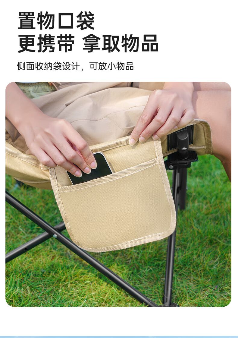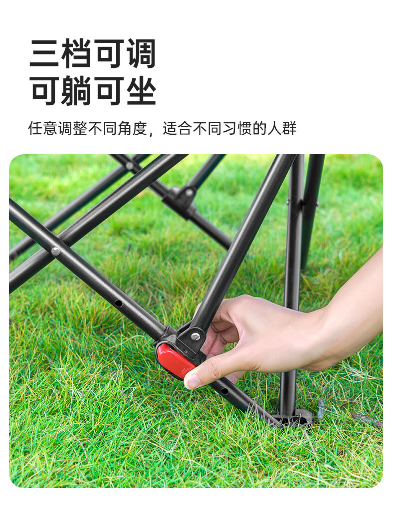 靠森(Kaooseen)户外折叠椅便携靠背钓鱼懒人椅 春游踏青露营蛋卷桌椅 黑色-月亮椅[加固加厚经典款]