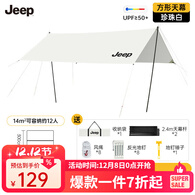 JEEP黑胶天幕户外遮阳防雨加强防晒沙滩津布露营凉棚雨棚蝶形天幕 14平加厚涂银防晒天幕[珍珠白]