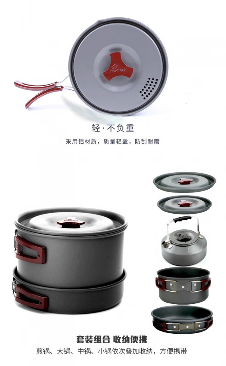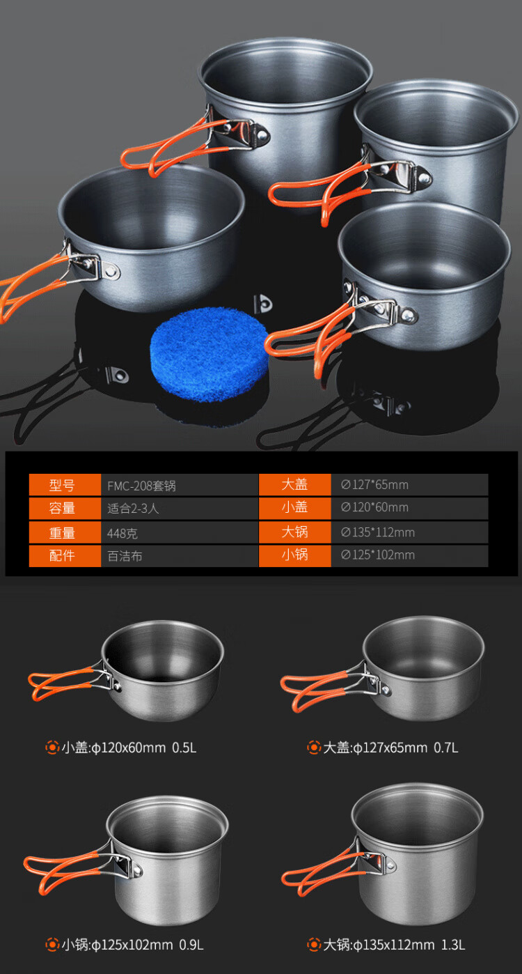火枫208套锅露营炊具便携式收纳折叠锅具3-4人野营 【全套锅】深灰色
