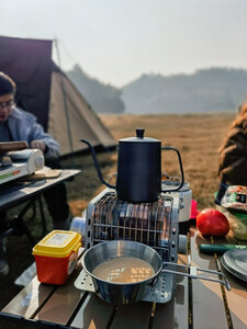 火力大小:这款的🔥还是挺大的,比我想象中的发散热量多。几个人坐在旁边烤火非常温暖。上面拿来用个小锅烧水煮茶都非常的不错。 一瓶卡式炉都用三个小时左右。