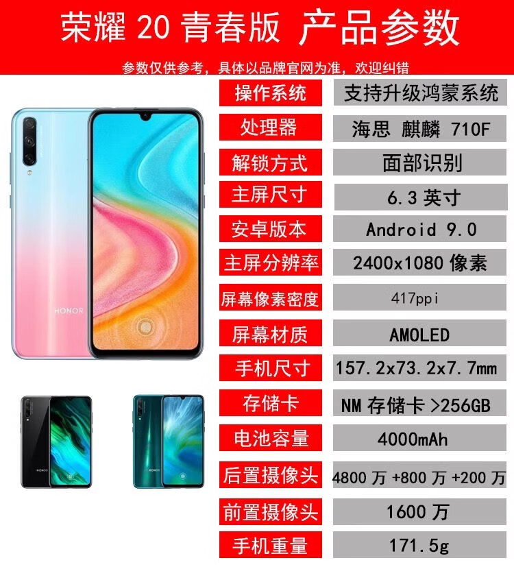 荣耀(HONOR)/ 20青春版通4G指纹大屏学生游戏工作备用国屏手机 冰岛幻境 8GB+128GB x 4G全网通 x 套餐二11