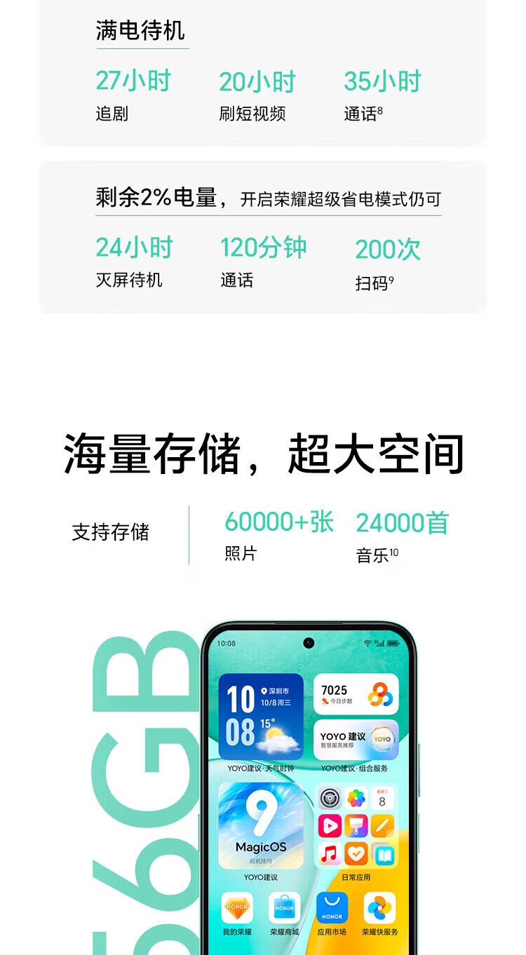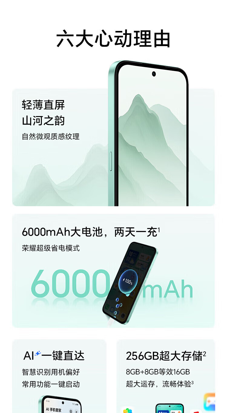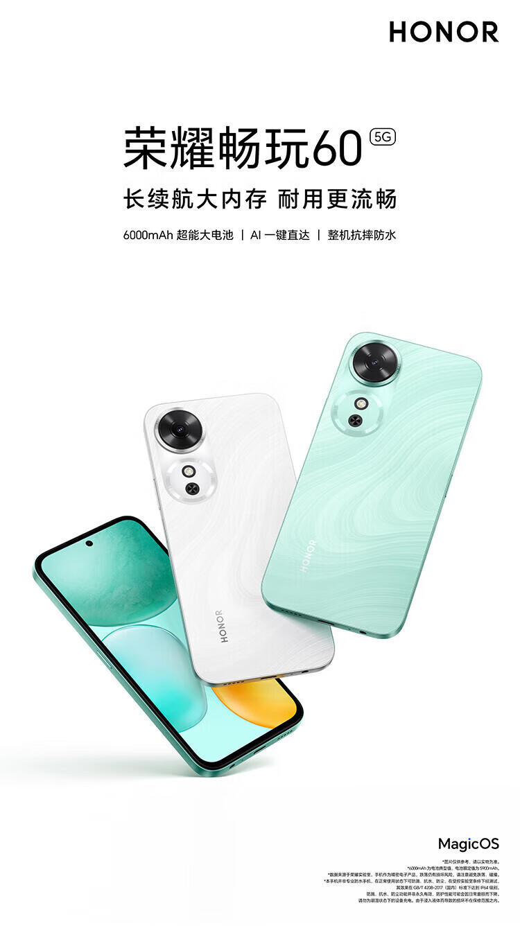 Hi nova 华为智选手机 60 -70 Plus 新款5G手机 防摔 防水 高清大屏大内存 6000mAh长续航 手机链接可选 玉龙雪 6+128GB-60