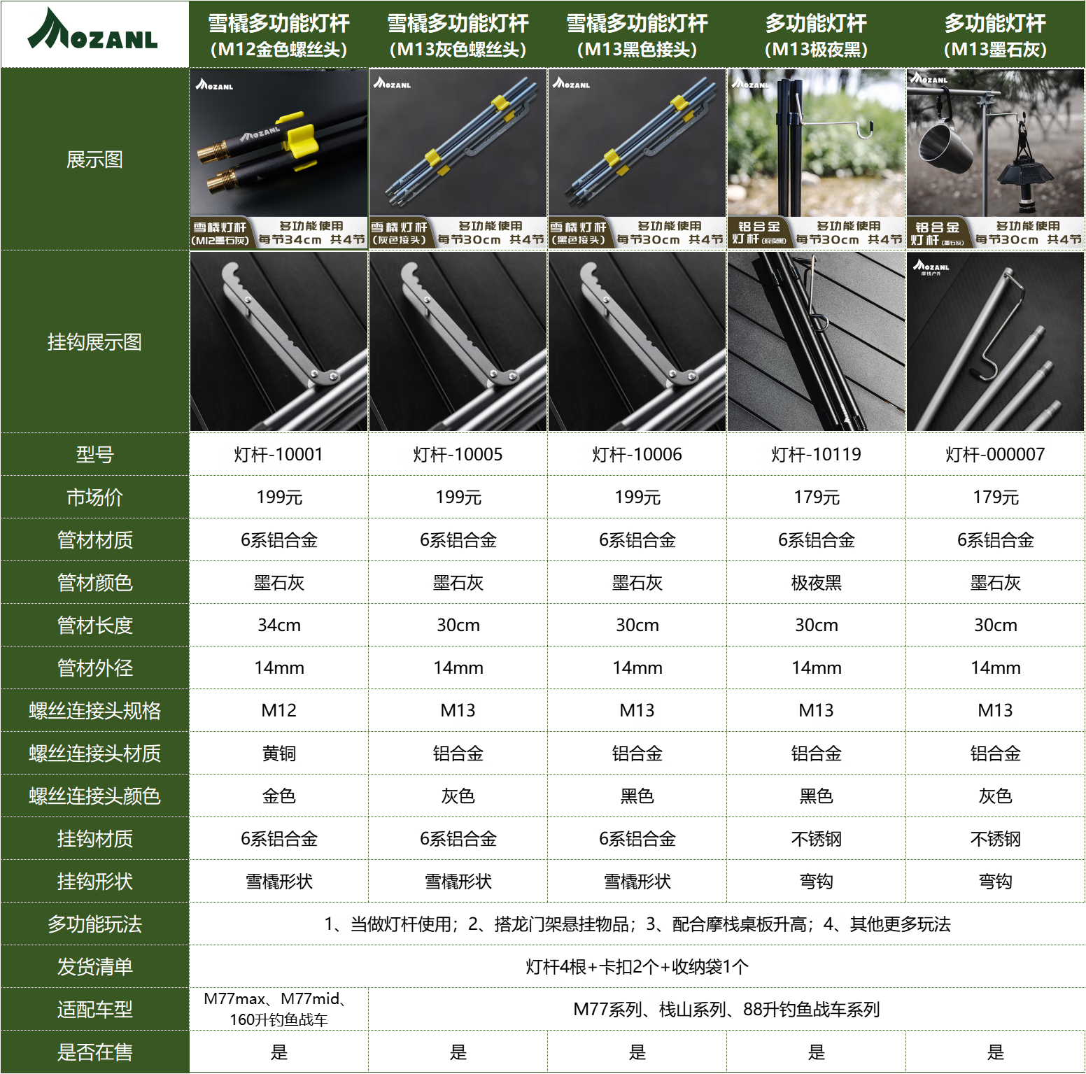 摩栈多功能户外铝合金灯杆搭龙门升高桌板便携可拆解安装方便 雪橇灯杆灰色(M12)