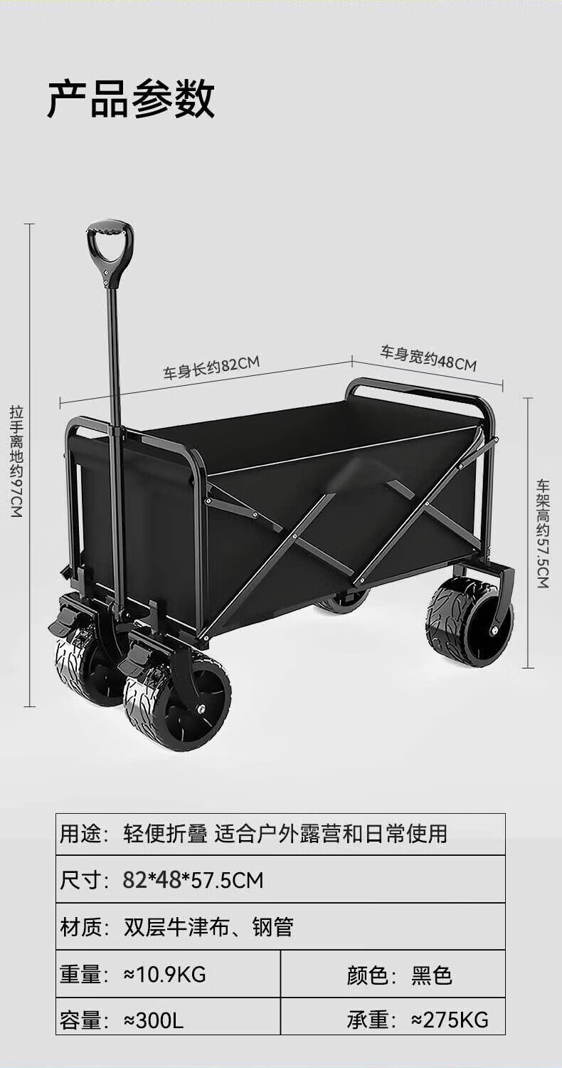产品很棒,拉东西特别方便,还能折叠不占地方。去野餐露营都用得上,质量也挺结实。